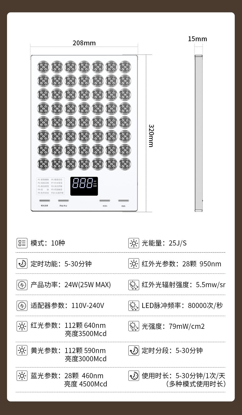 Fila Grande de Lámpara Instrumento de Belleza Fotón Instrumento de Belleza para la Piel Anti-Acné Aclarador Luz para Manchas Espectrómetro de Fototerapia Instrumento de Rejuvenecimiento Máscara Rejuvenecedora