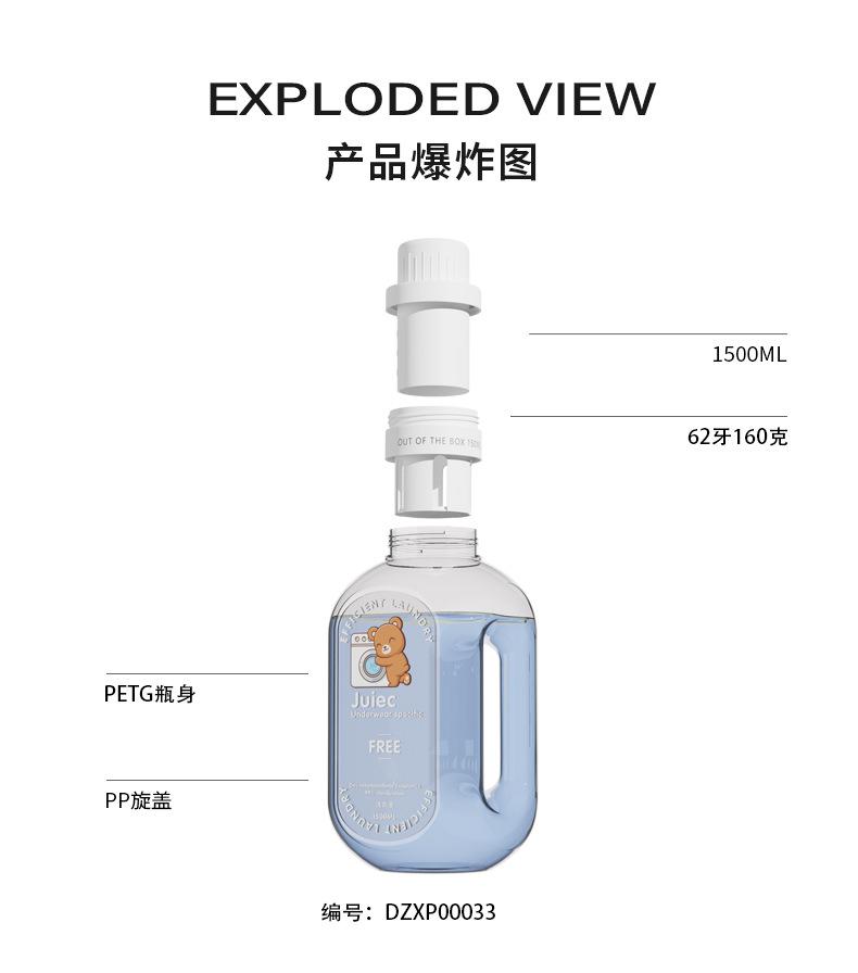 Botella de PETG transparente para detergente líquido 1.5L Gran capacidad Detergente Suavizante para ropa Plástico Lavar y Proteger Material de bolsa con tapa