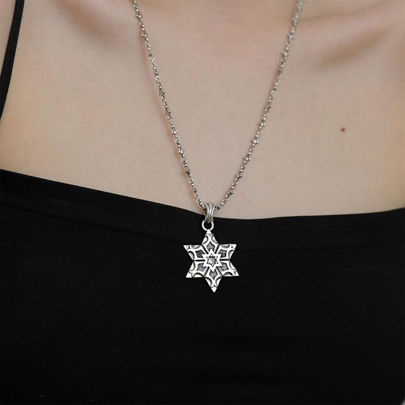 Colgante de estrella de seis puntas con diseño vintage de nicho, estilo femenino, con personalidad, ideal para parejas, combina con todo, 2023.