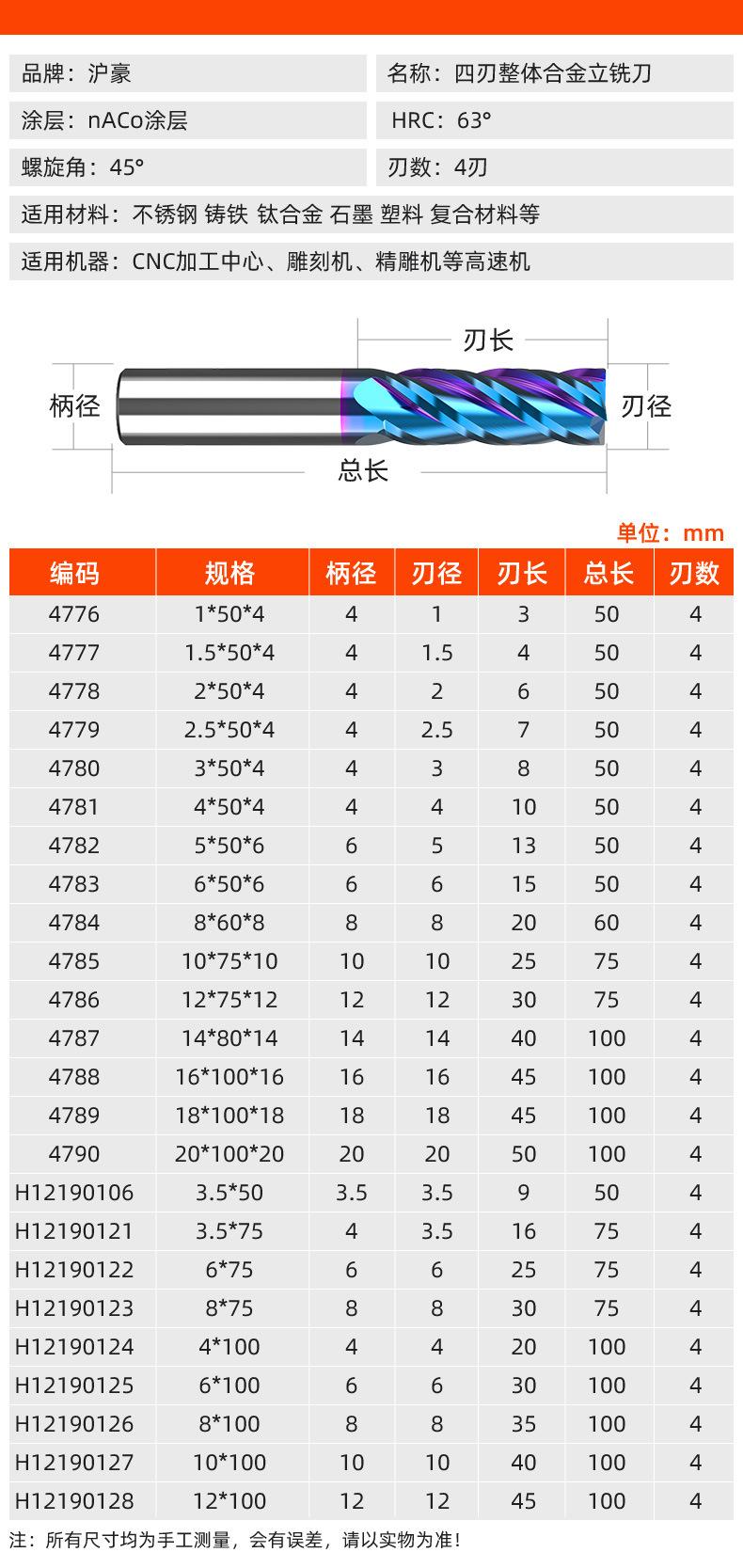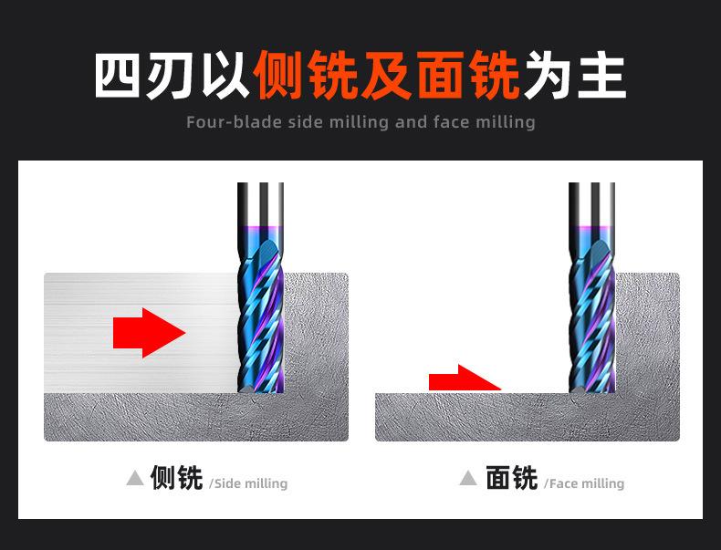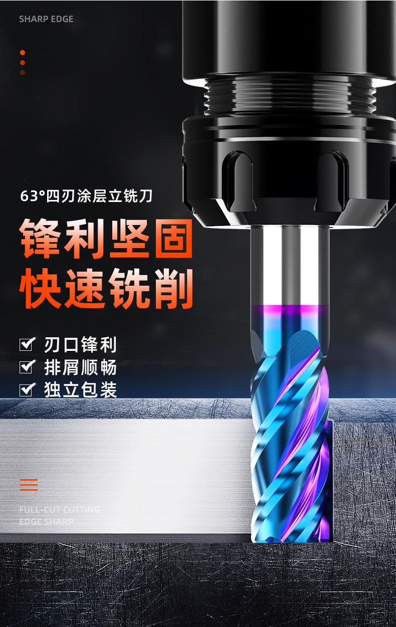 Fresa de acero de tungsteno de 4 hojas y 63 grados Huhao, fresa de aleación, fresa CNC, fresa de extremo para centro de mecanizado CNC, venta al por mayor