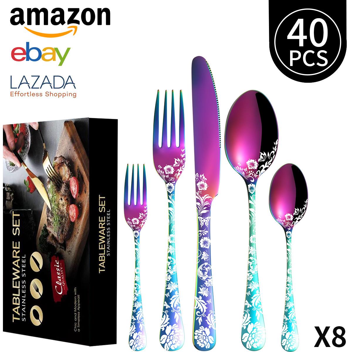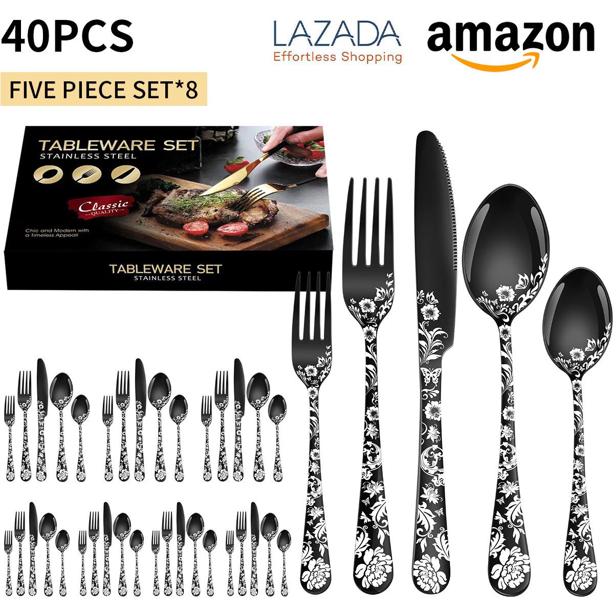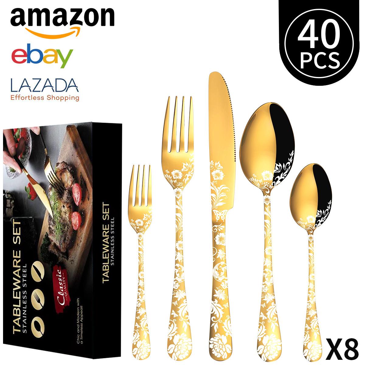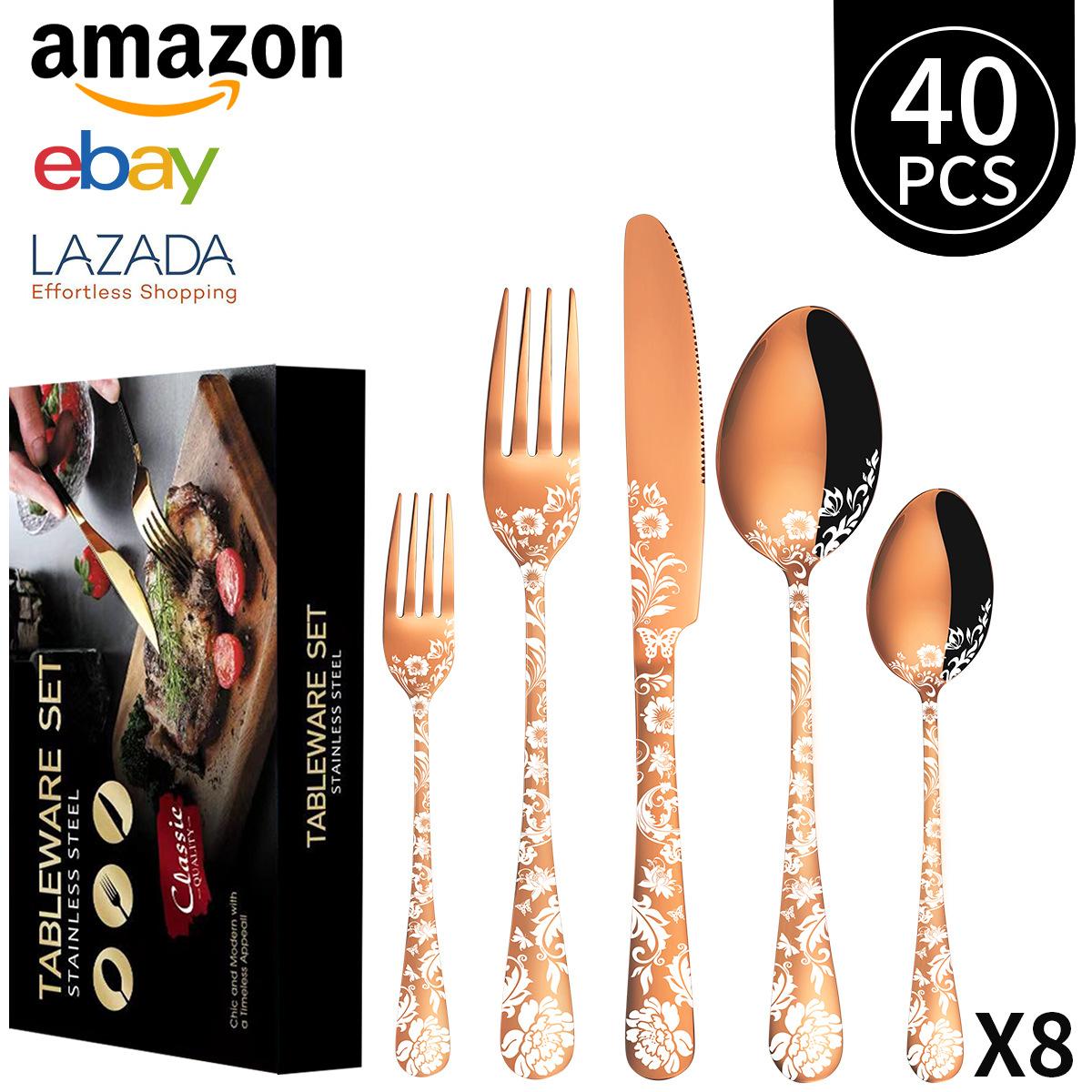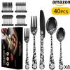 Vajilla de acero inoxidable con diseño transfronterizo de Amazon, juego de 40 cuchillos, tenedores y cucharas, vajilla occidental para 8 personas, cuchillo, tenedor y cuchara para carne