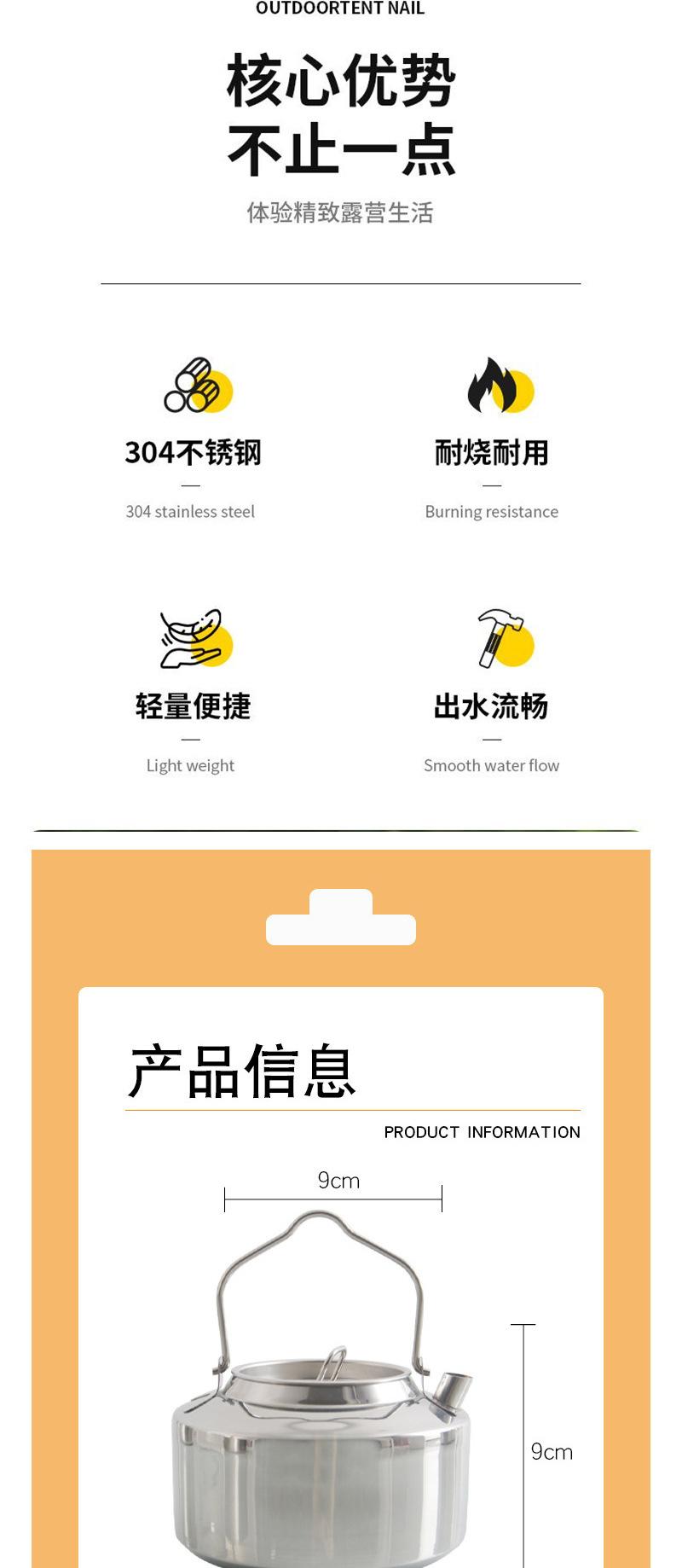 Hervidor de Acero Inoxidable Hervidor de Camping al Aire Libre Suministro Directo de Fábrica Picnic Ultraligero Hervidor Portátil para Exterior