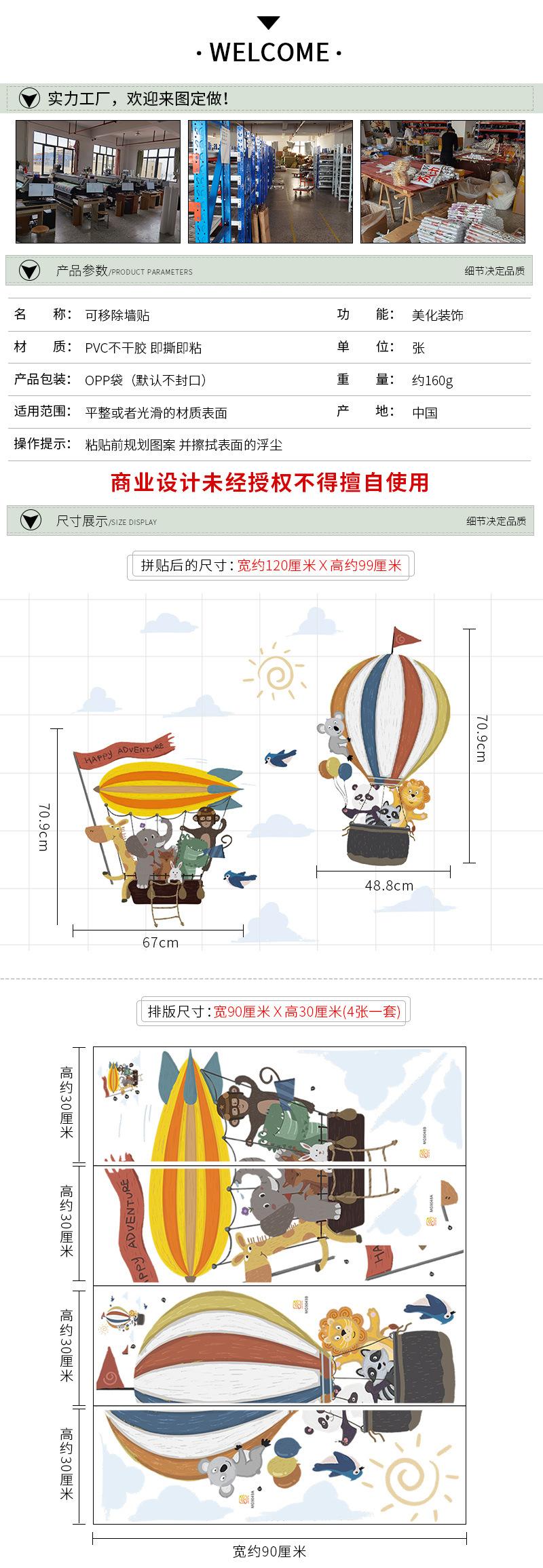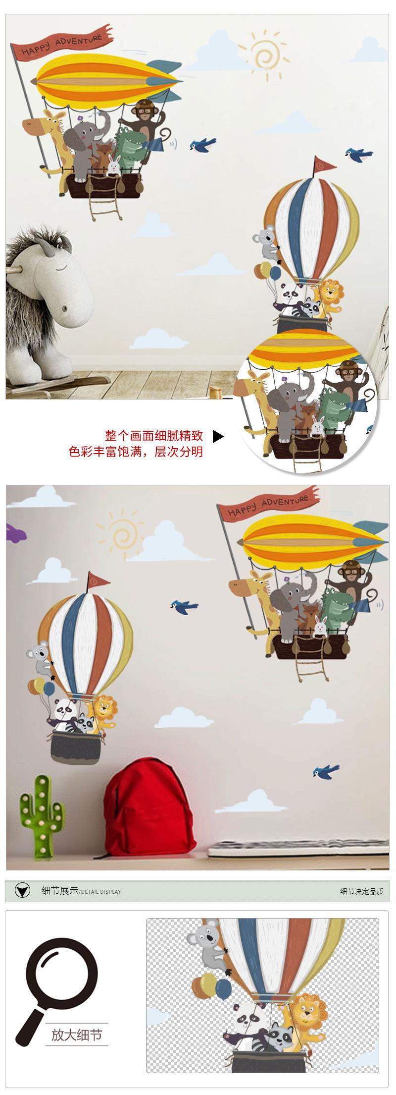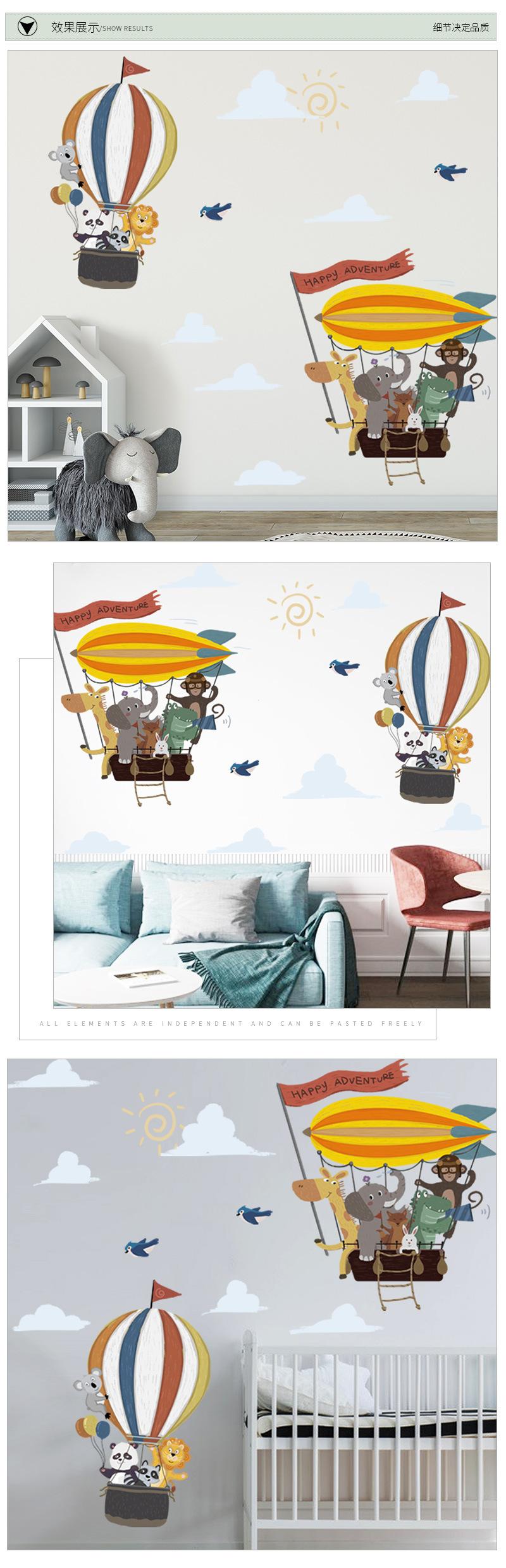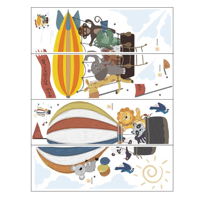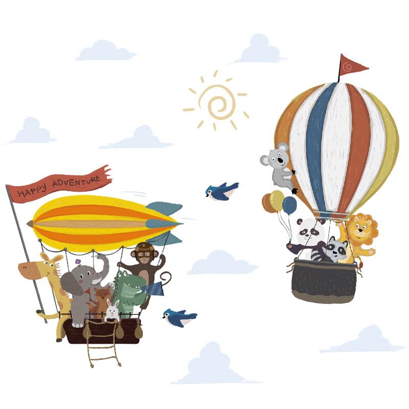 Pegatinas de pared de gran tamaño con diseño de animales volando a lo lejos, globo aerostático, decoración para habitación infantil, pegatinas de pared autoadhesivas.