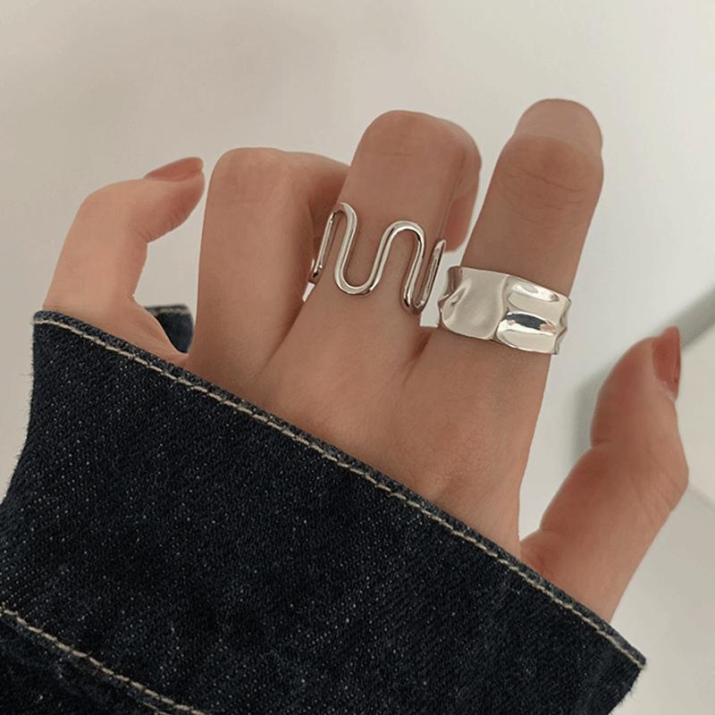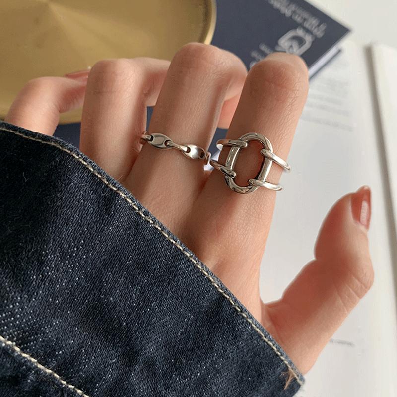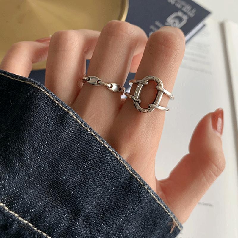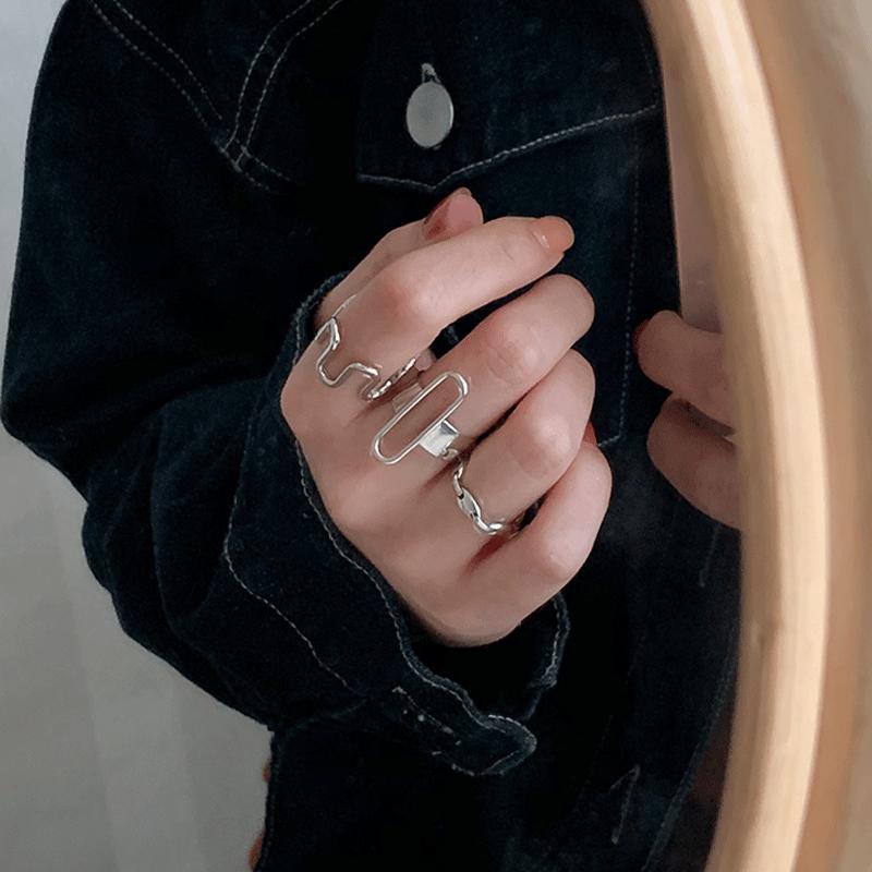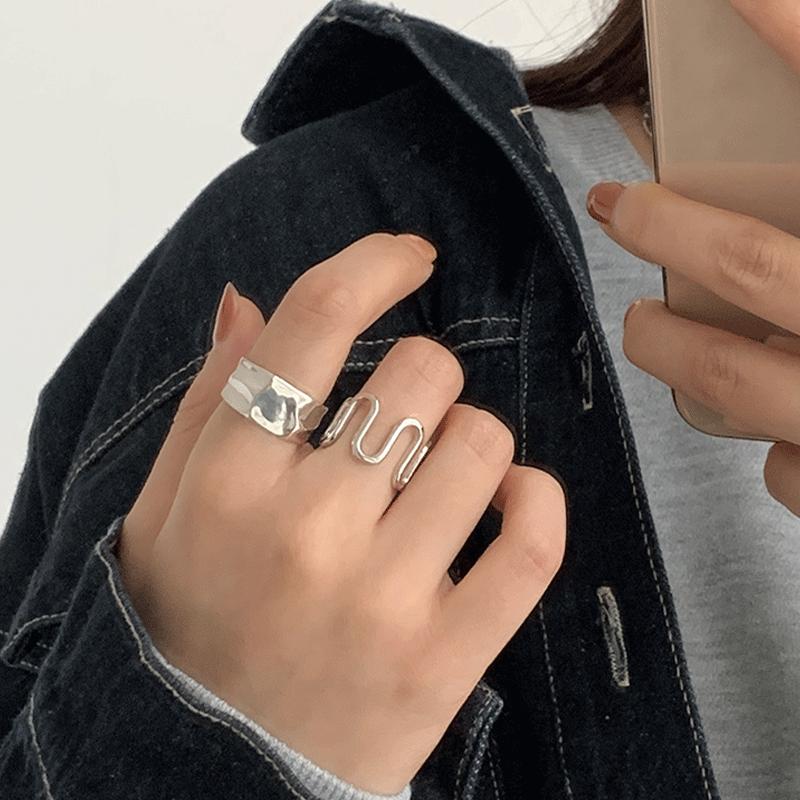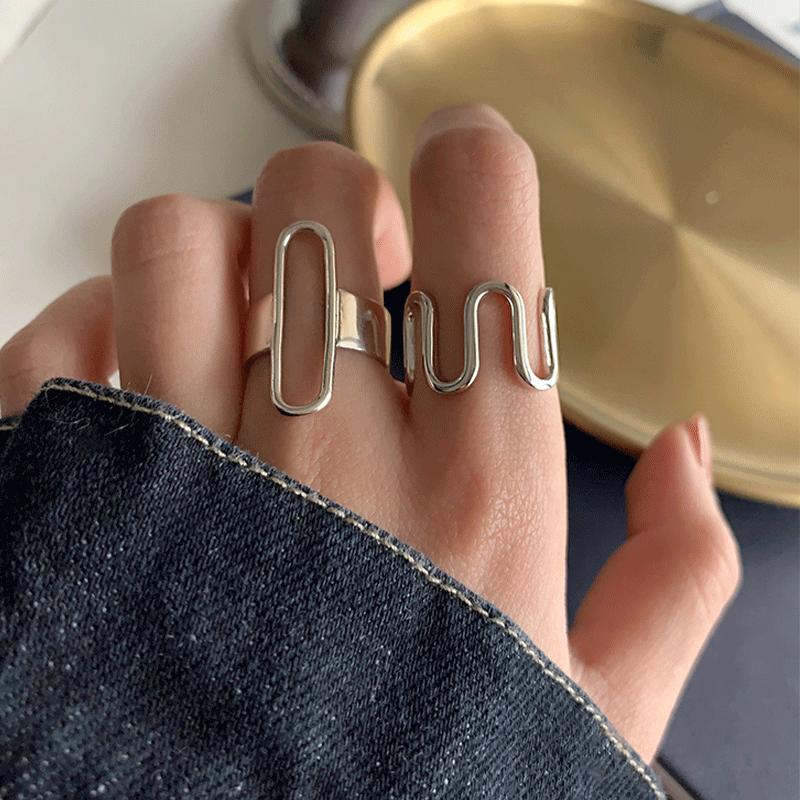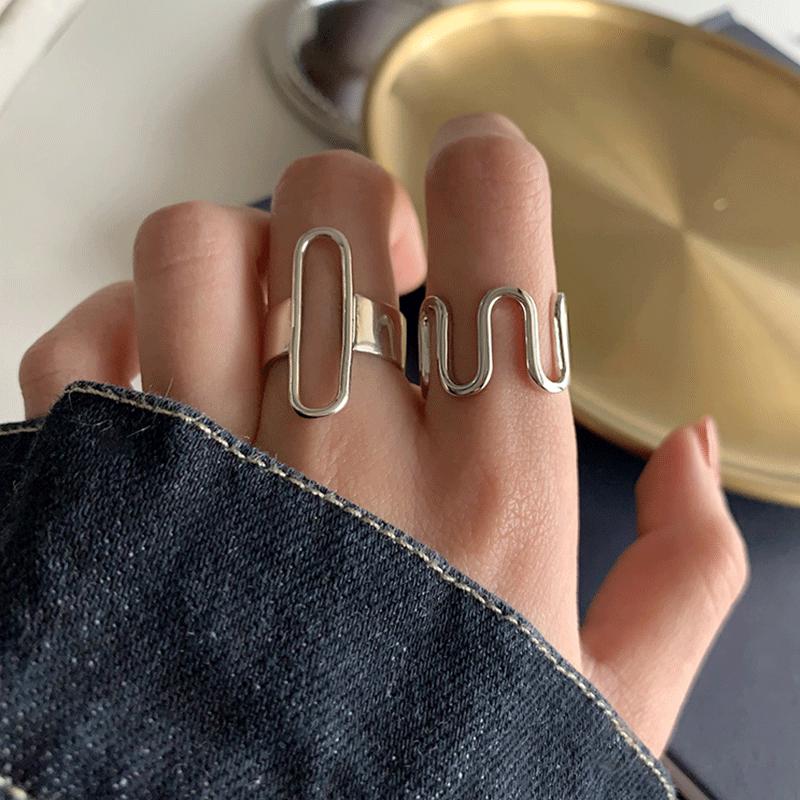 Anillo de plata con combinación de diseño de línea, personalidad de moda femenina, estilo retro de nicho frío, temperamento hip hop, anillo para dedo índice