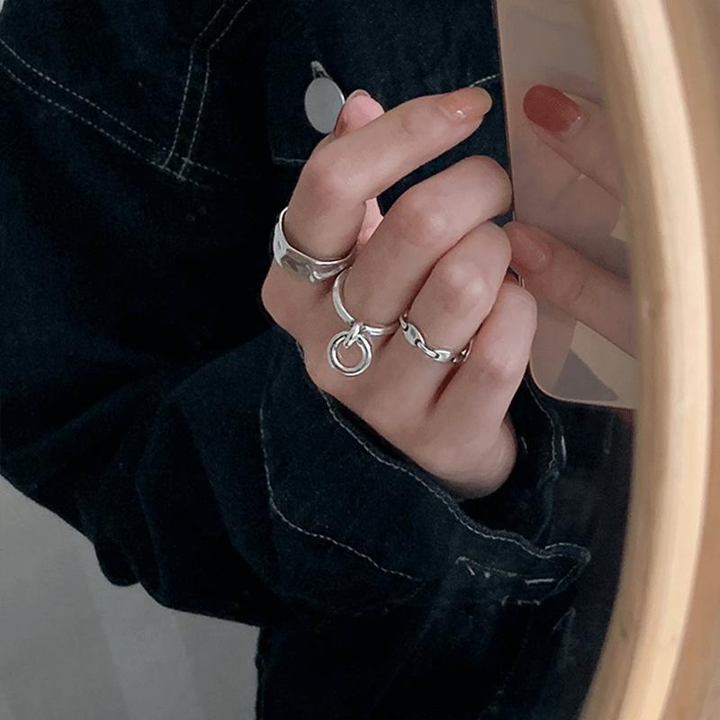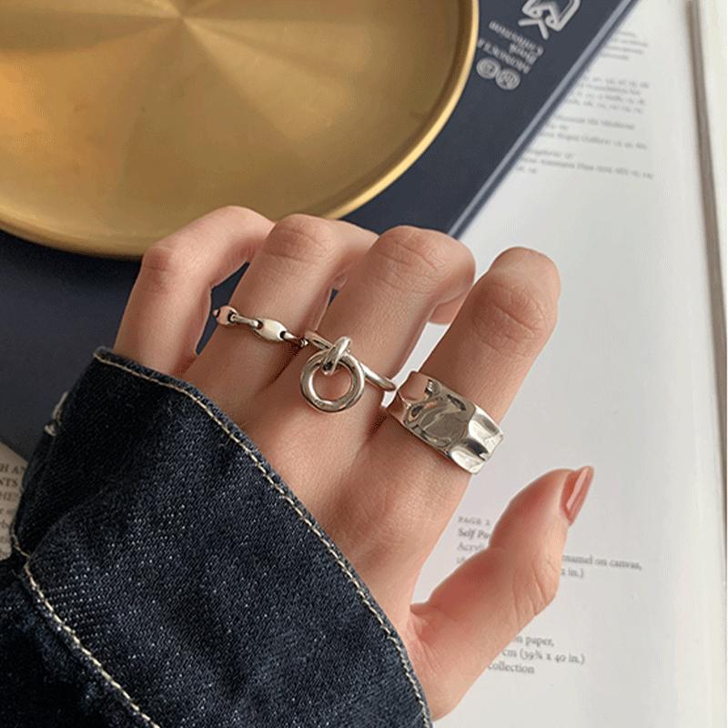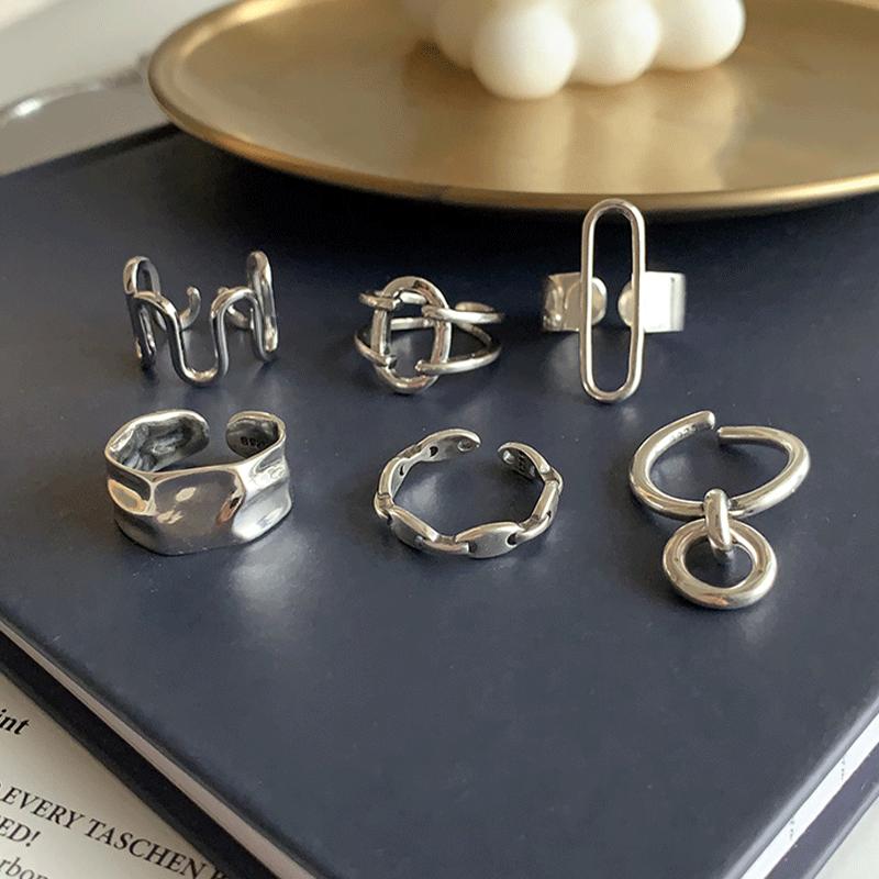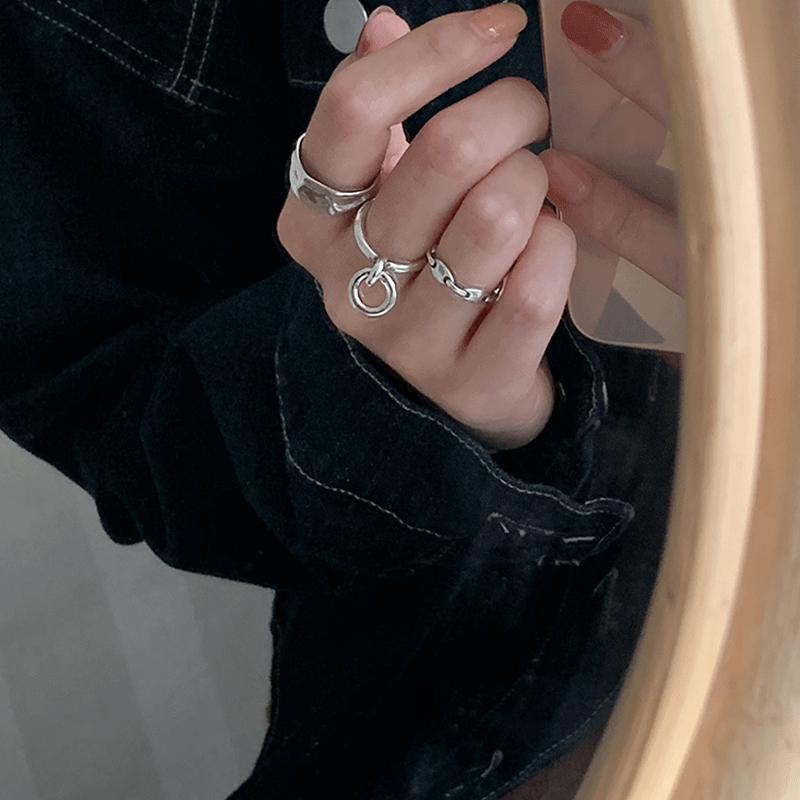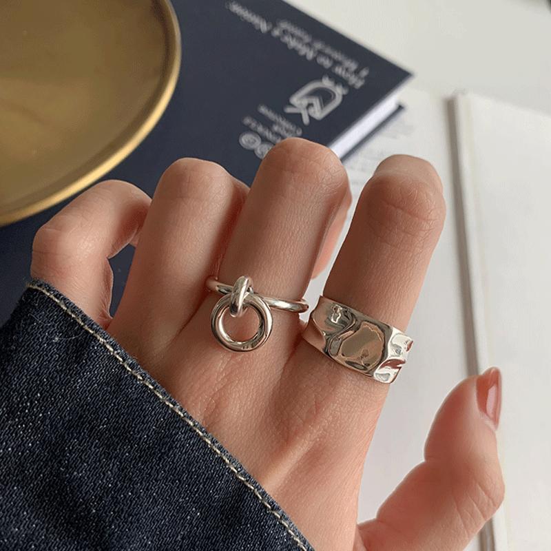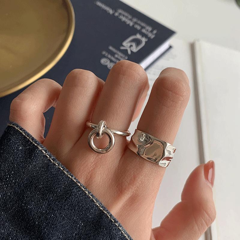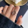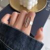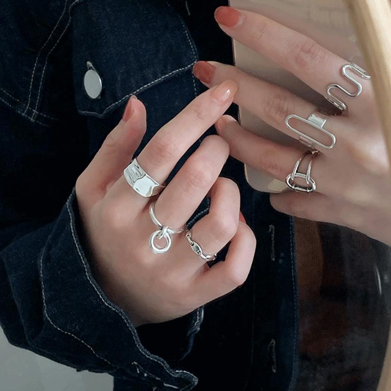 Anillo de plata con combinación de diseño de línea, personalidad de moda femenina, estilo retro de nicho frío, temperamento hip hop, anillo para dedo índice