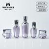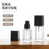 Crema cosmética para ojos envasada en frasco cuadrado de vidrio transparente con tapa negra de 3 ml, 5 ml, 7 ml y 9 ml.