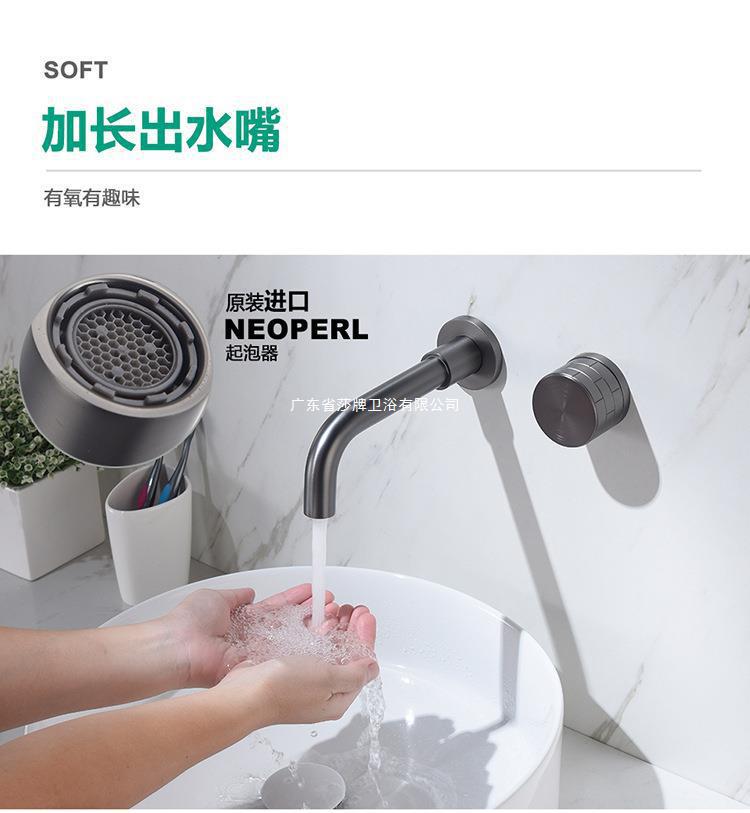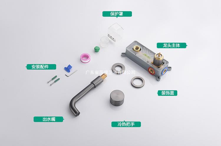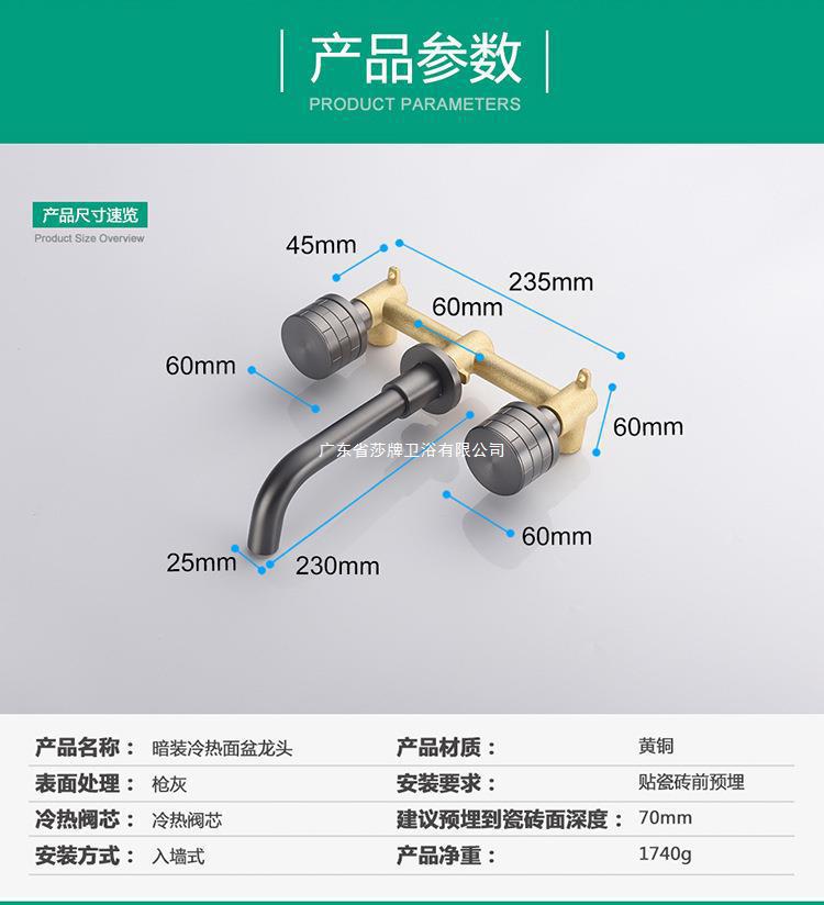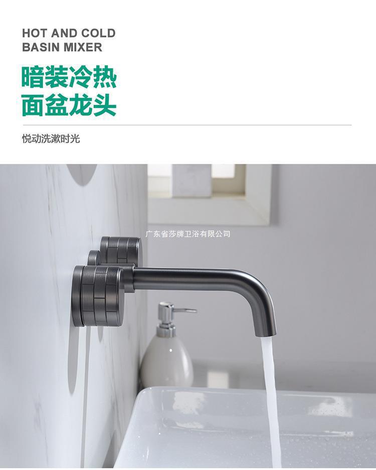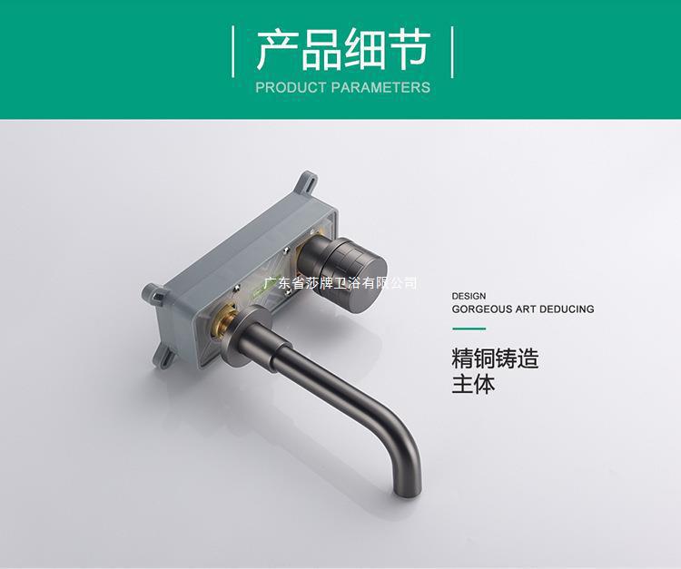 Grifo de lavabo de pared de cobre, grifo de lavabo empotrado de agua fría y caliente, grifo de ducha oculto, pistola oculta, color gris