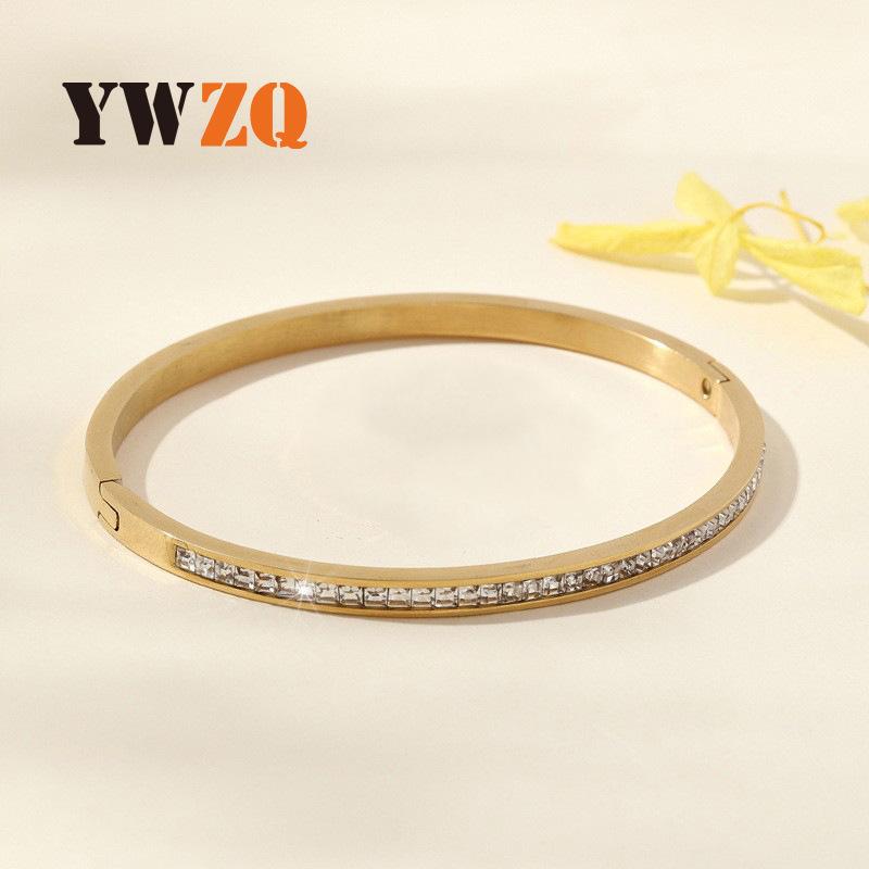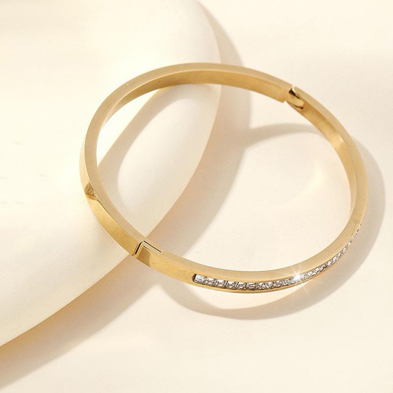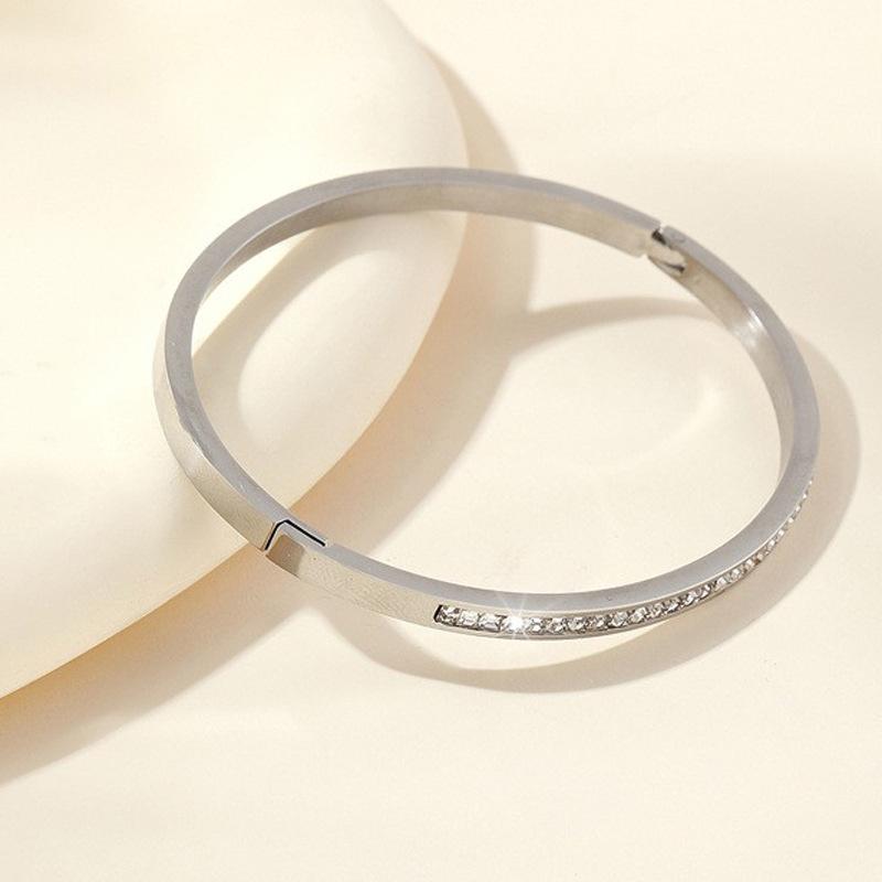 Europa y Estados Unidos joyería transfronteriza caliente de acero inoxidable exquisita incrustación de diamante cuadrado hebilla de alta calidad pulsera de acero de titanio tipo O fabricantes