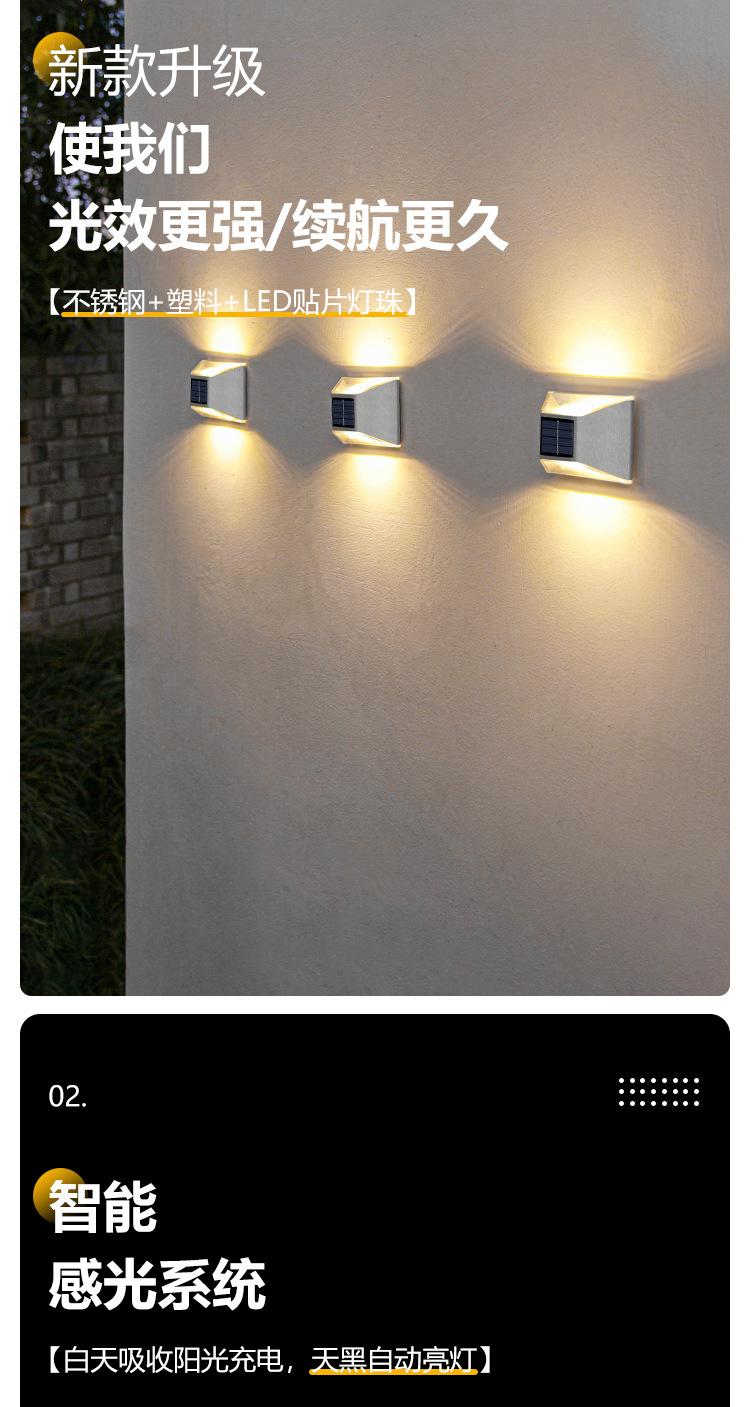 Lámpara de pared solar para exteriores, lámpara de pared impermeable, iluminación decorativa de acero inoxidable para exteriores, lámpara de pared pequeña para patio de villa