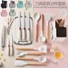 Juego de Utensilios de Cocina de Silicona con Mango de Madera Transfronterizo de 19 Piezas Antiadherente Espátula para Cocinar con Cubo de Almacenamiento Juego Combinado de Cuchillos