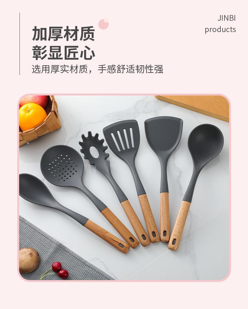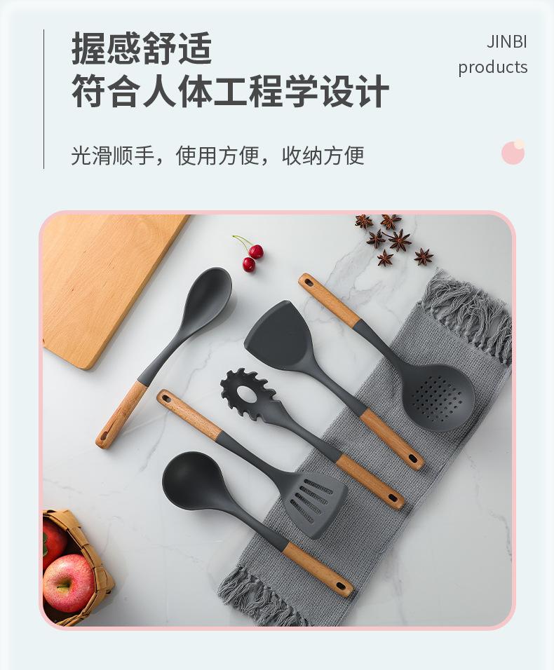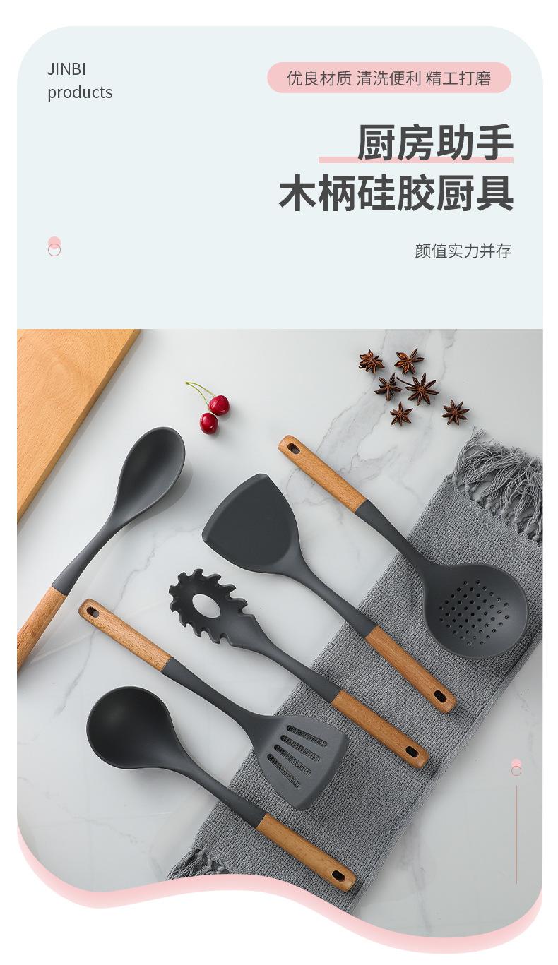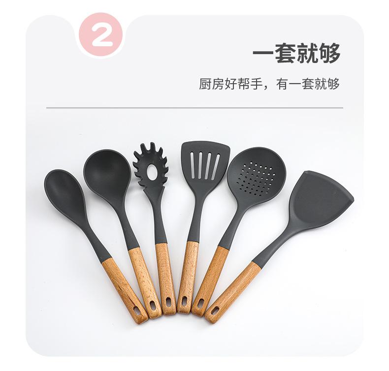 Juego de Utensilios de Cocina de Silicona Amazon Juego de 6 Piezas Espátula y Cuchara para Cocinar con Mango de Madera Almacenamiento Silicona de Grado Alimenticio para Sartén Antiadherente