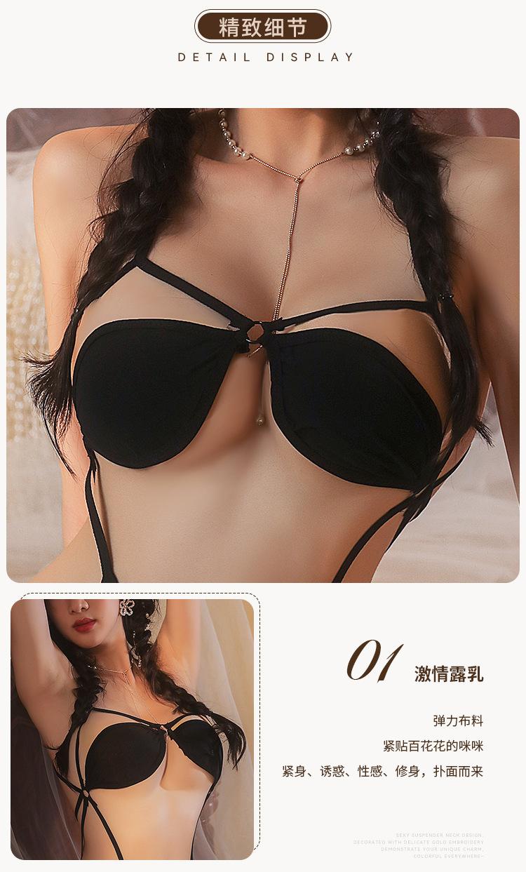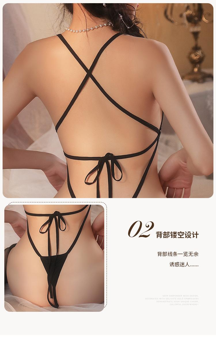 Lencería sexy Milian con bordado de cuello halter, falda de malla a la cadera, cintura reveladora, hermosa espalda, deseo puro, vestido sexy, temperamento de secretaria