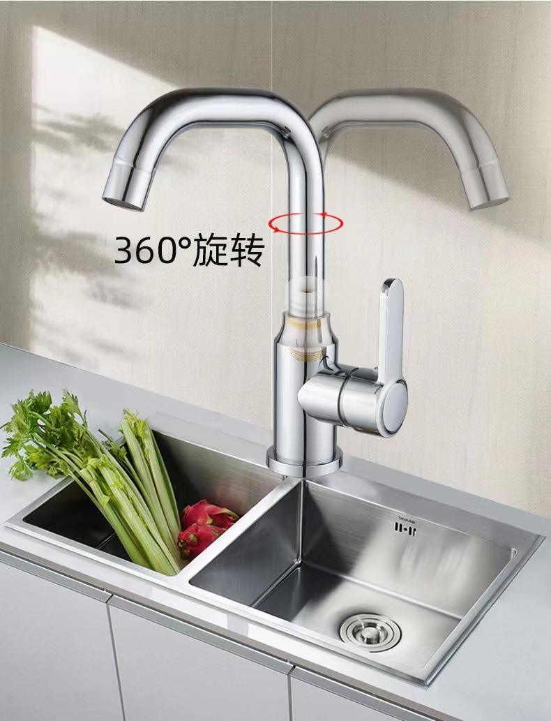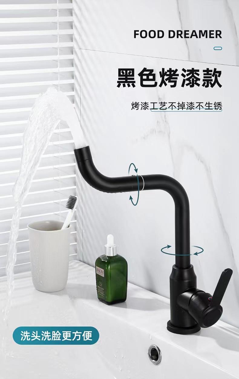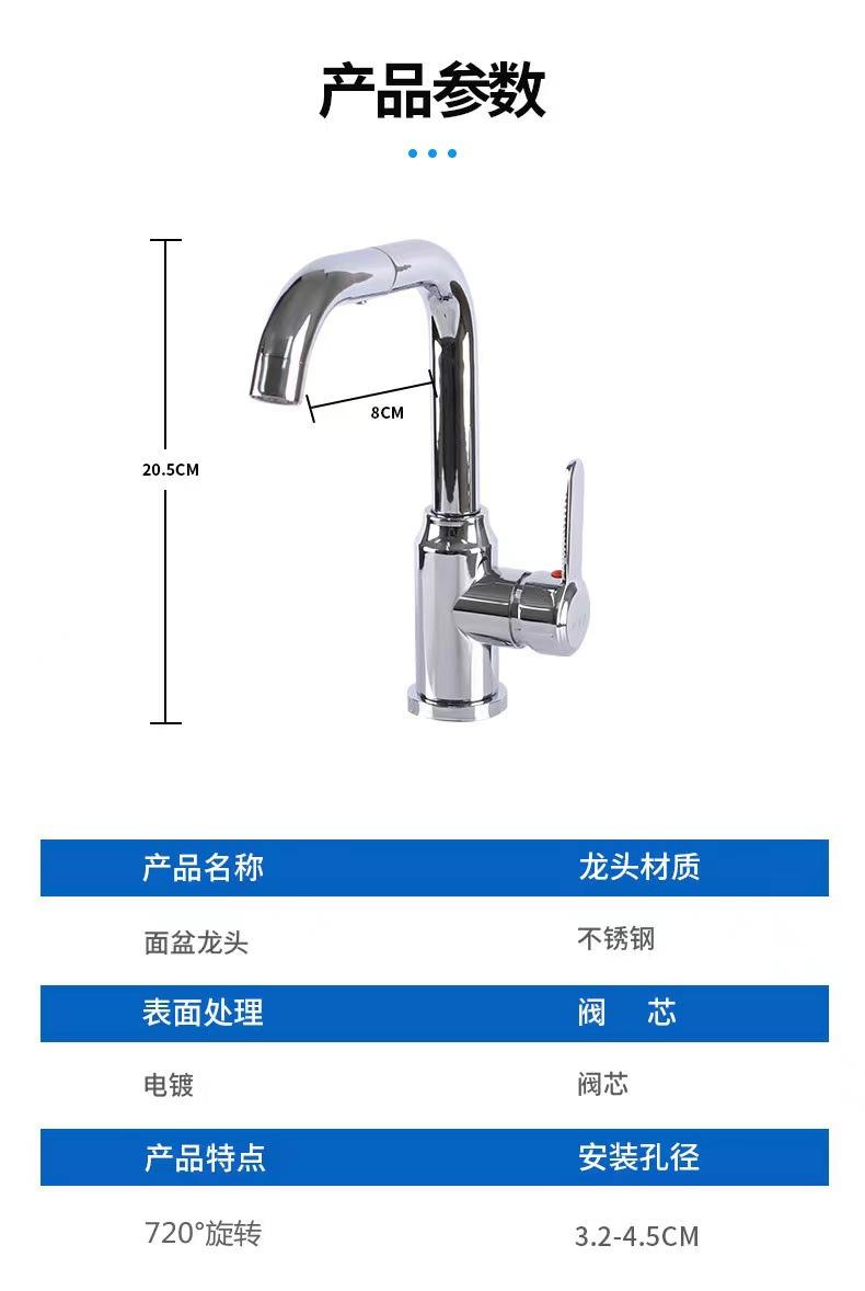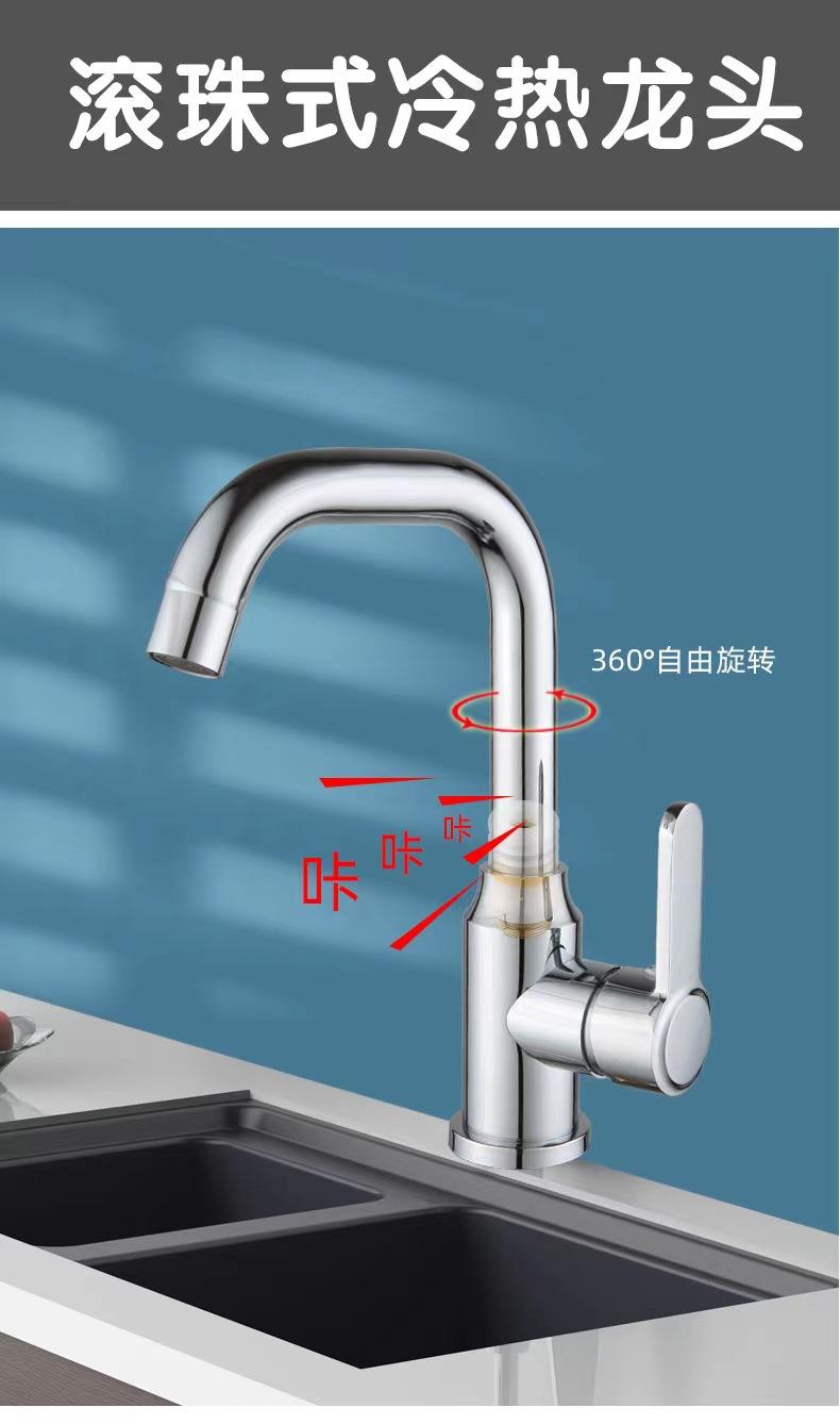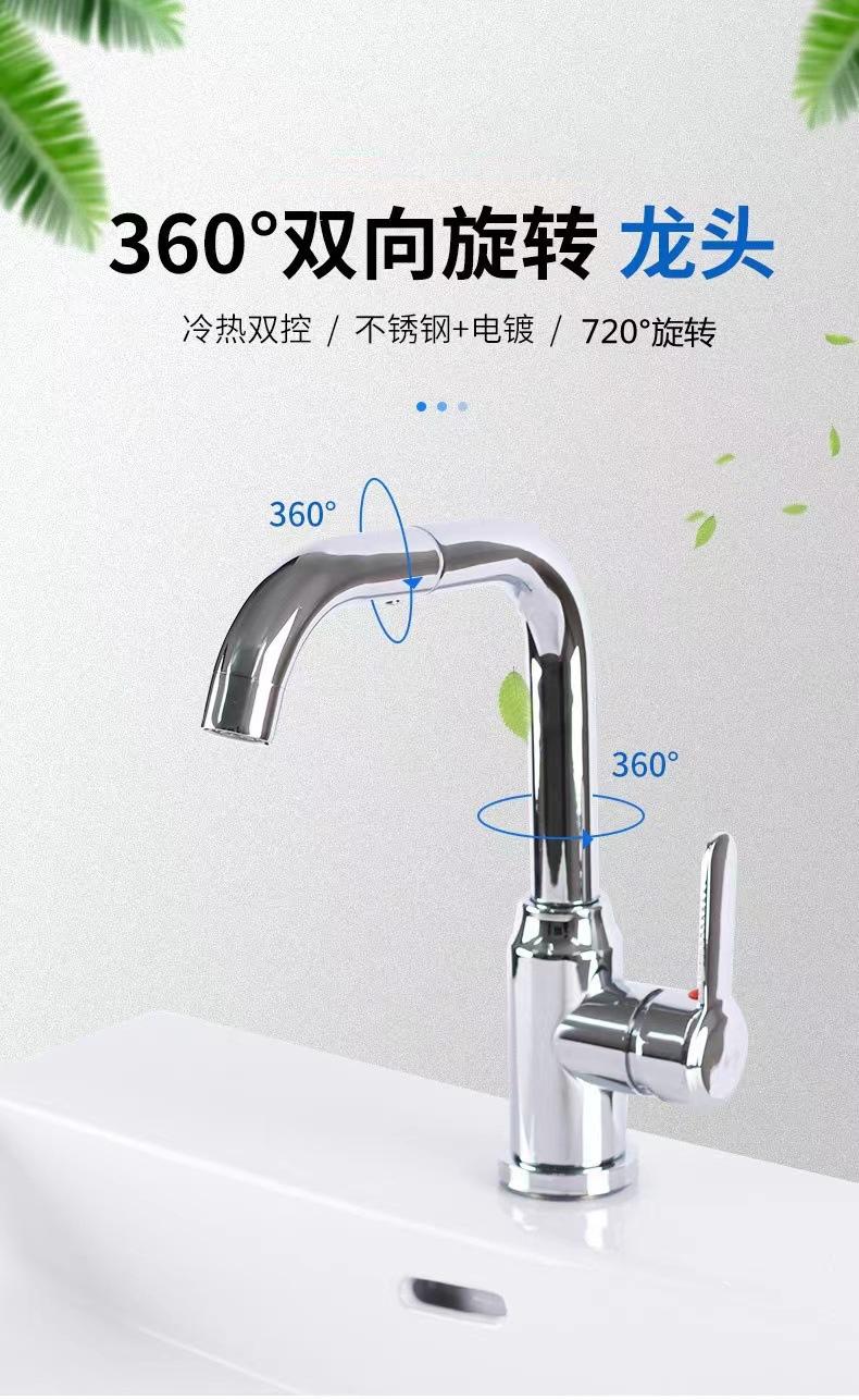 Grifo de lavabo de acero inoxidable para baño 360 Giratorio lavabo baño bola de siete caracteres grifo frío y caliente