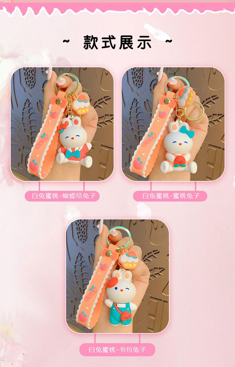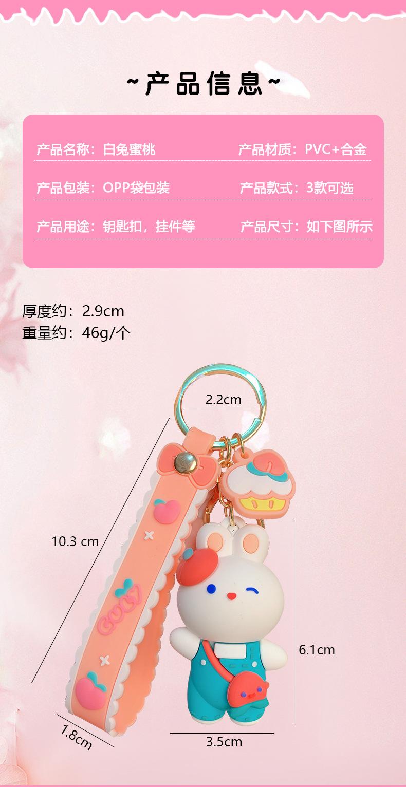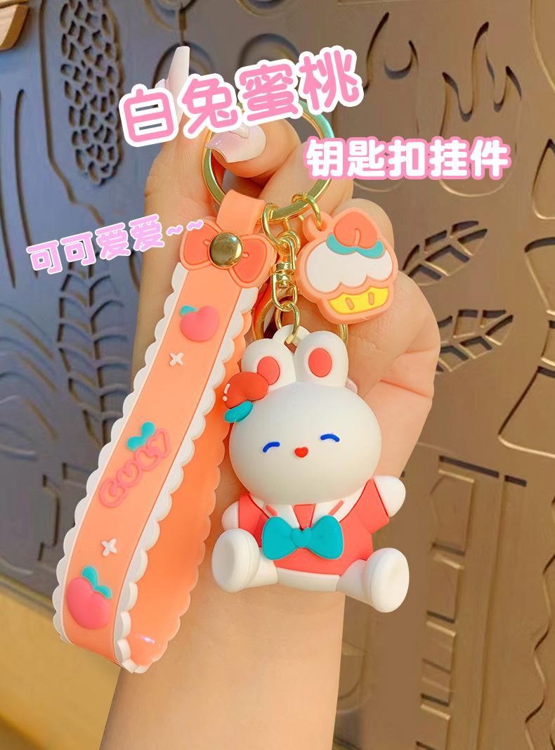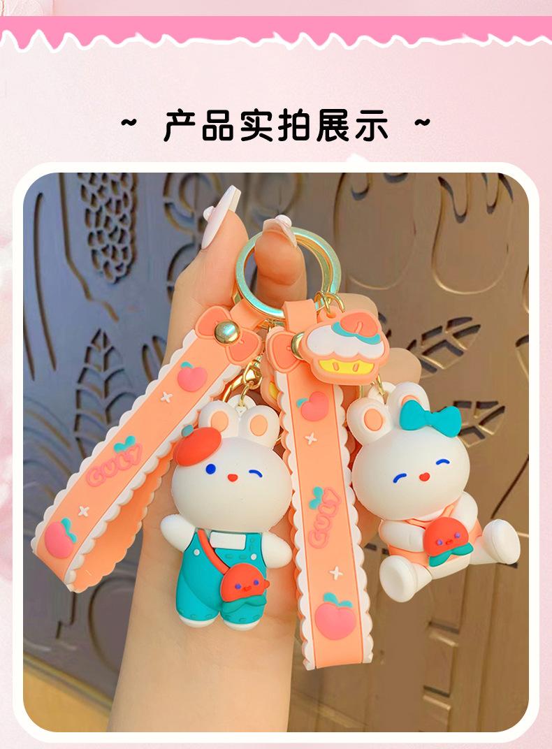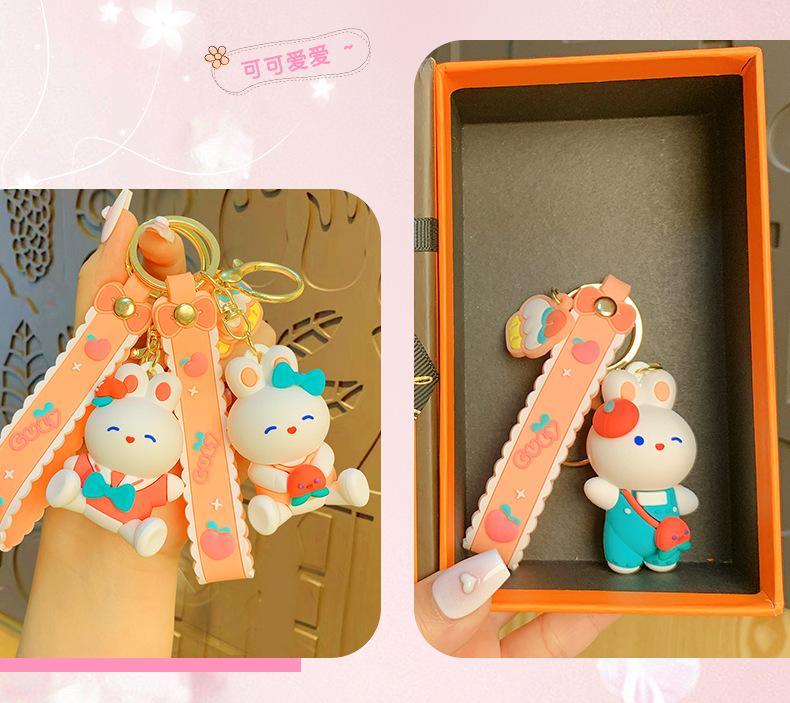 Lindo Dibujo Animado Durazno Conejo Blanco Muñeco Llavero Colgante Pareja Coche Bolso Colgante Pequeño Regalo Creativo Venta al por Mayor