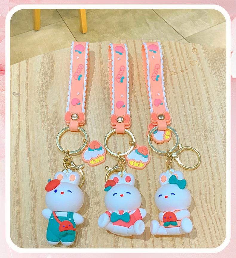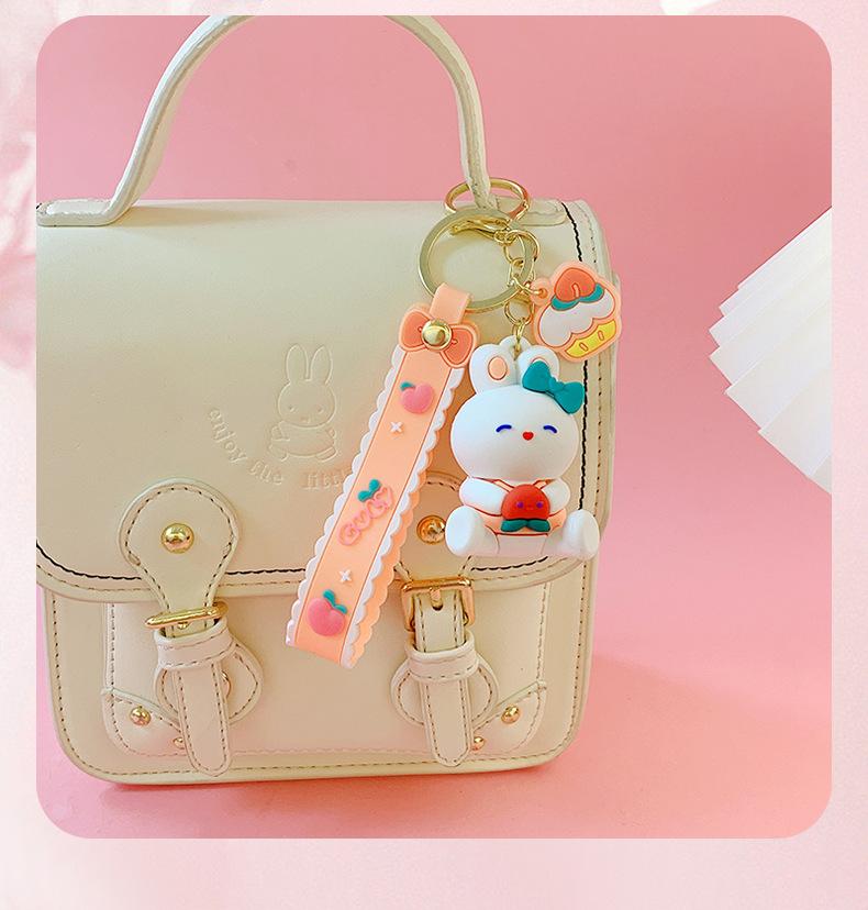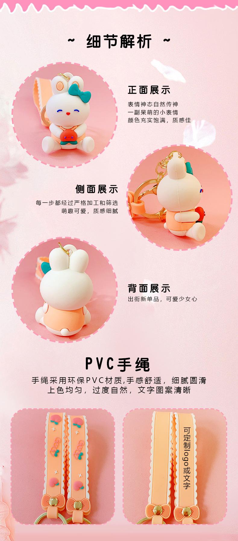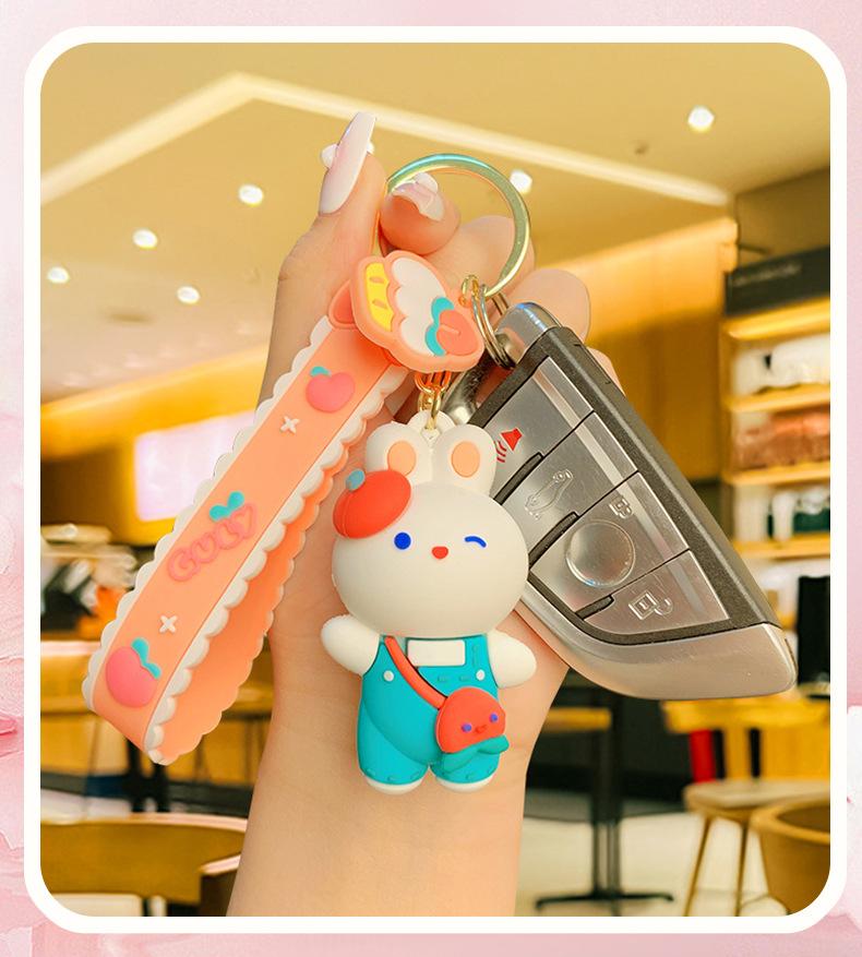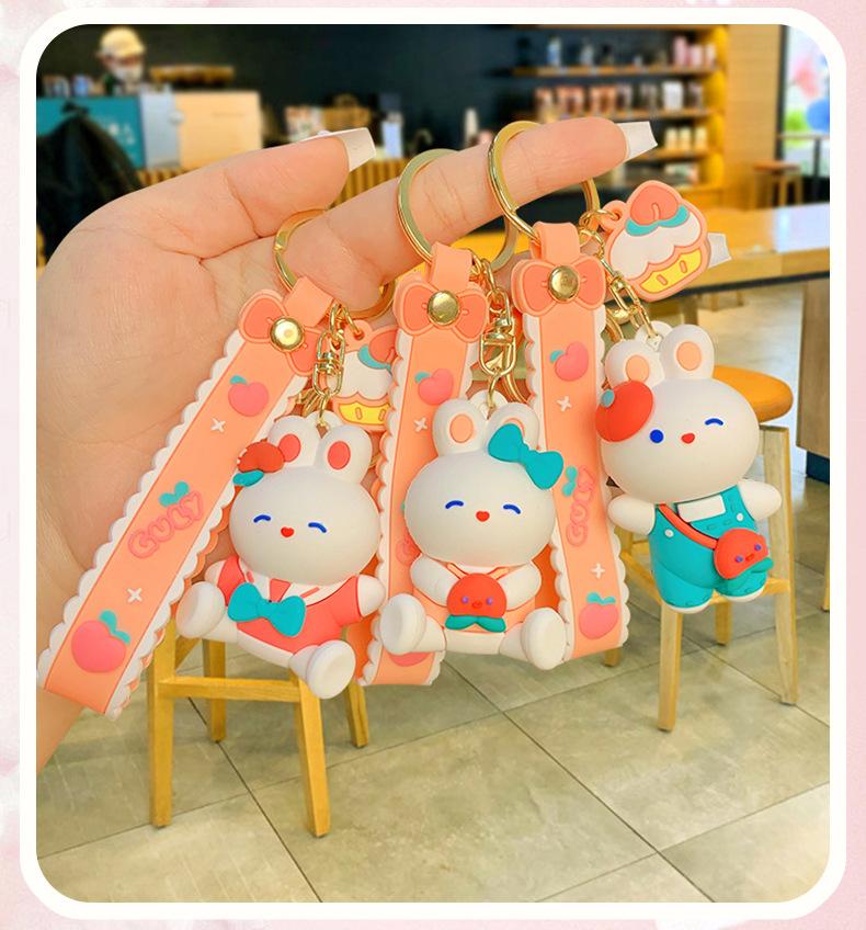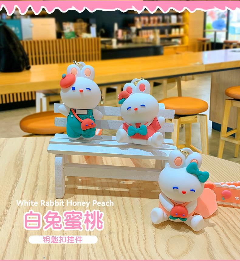 Lindo Dibujo Animado Durazno Conejo Blanco Muñeco Llavero Colgante Pareja Coche Bolso Colgante Pequeño Regalo Creativo Venta al por Mayor