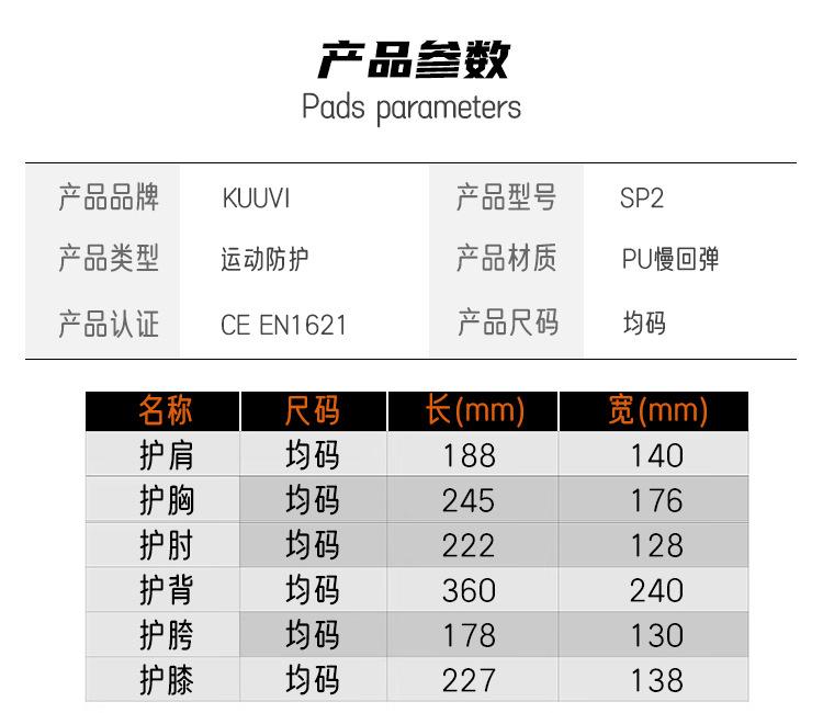 KUUVI Certificación CE de Motocicleta SP2 Protección de Seguridad para Conducción al Aire Libre Rodilleras Coderas Pecho Hombreras Espalderas traje