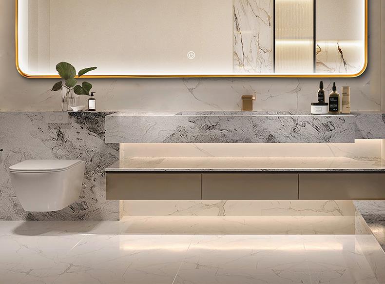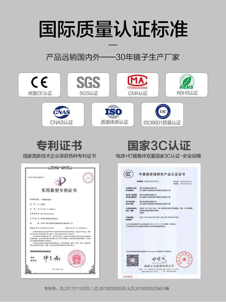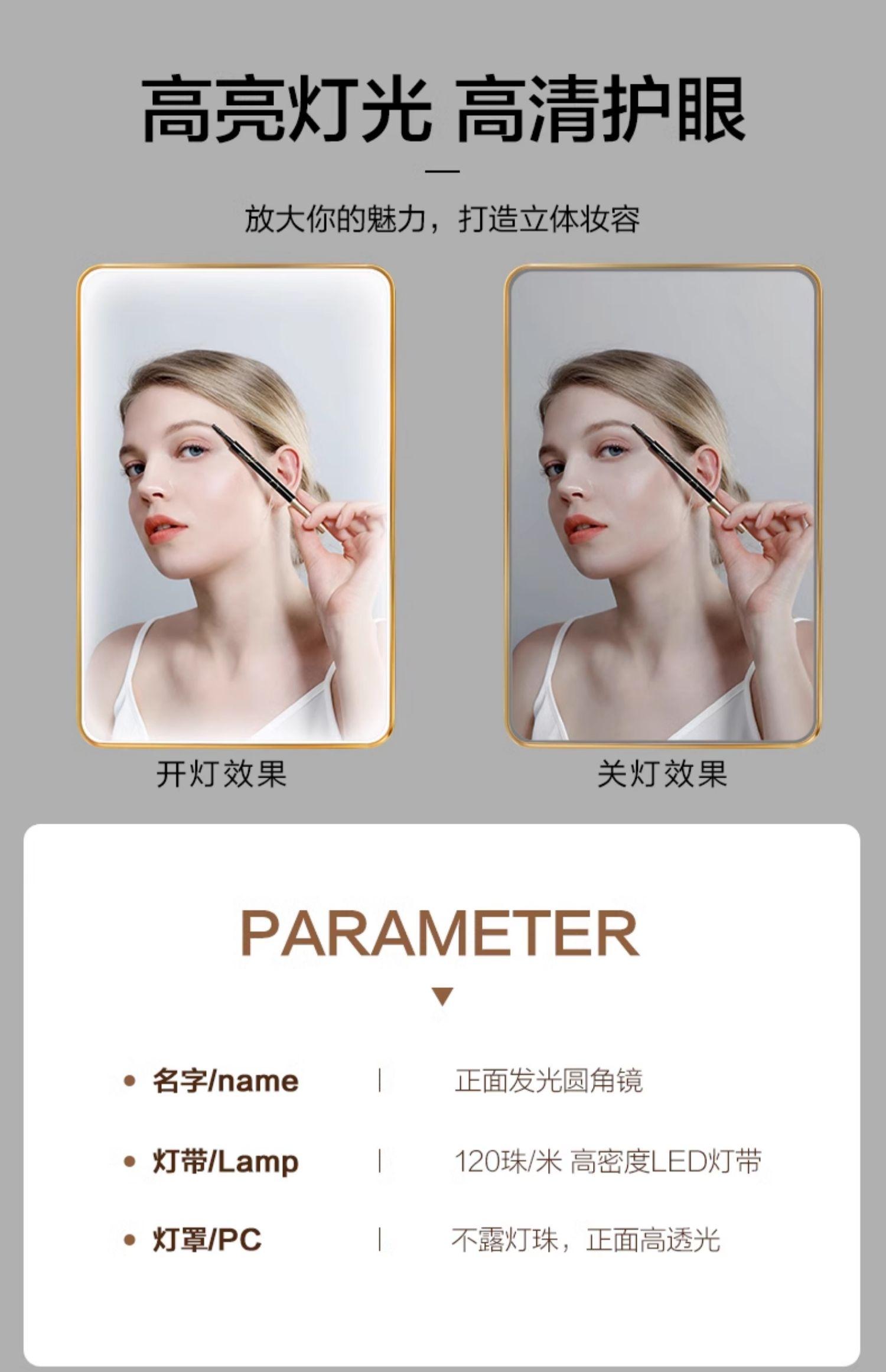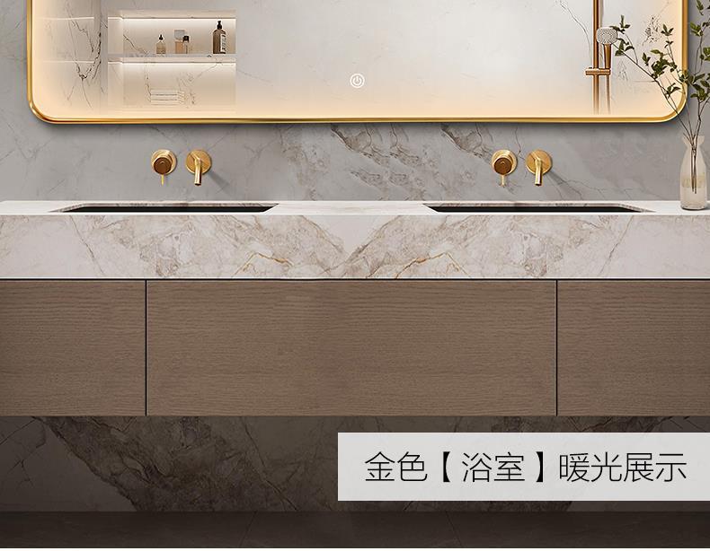 Gold frame [warm light + brightness adjustment] one-click multi-control + anti-fog and explosion-proof