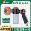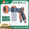 Boquilla de riego para jardín, pistola de agua para lavado de coches doméstico, olla de espuma, herramienta de lavado de coches, pistola de agua con 8 funciones y pulsador de pulgar