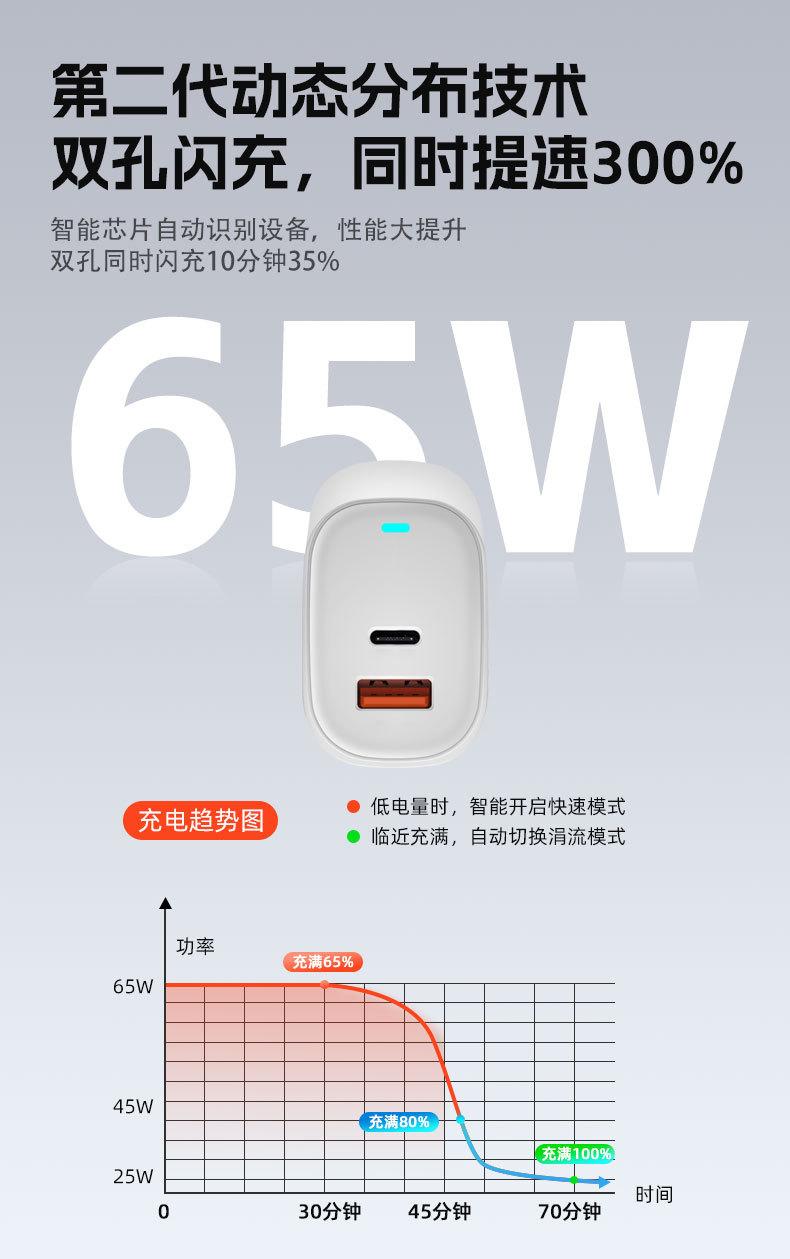 Cargador de Nitruro de Galio Pd65W Cargador Impreso Carga Rápida Adecuado para Samsung Apple 15 Tablet Laptop