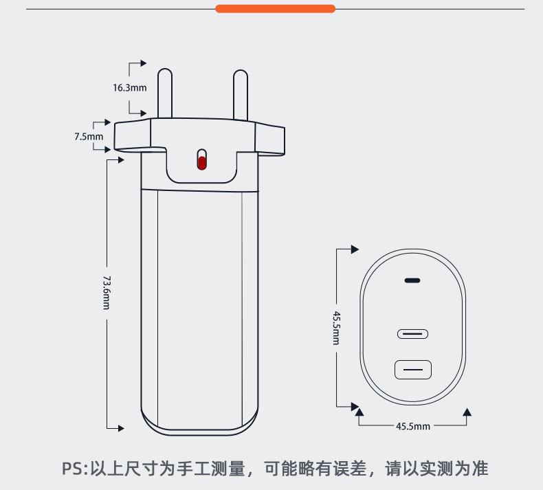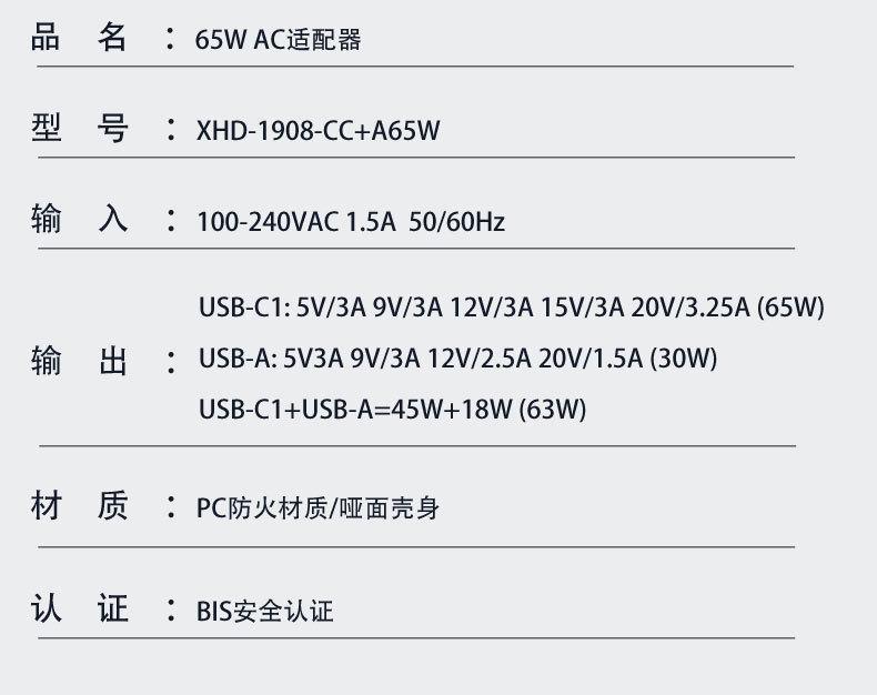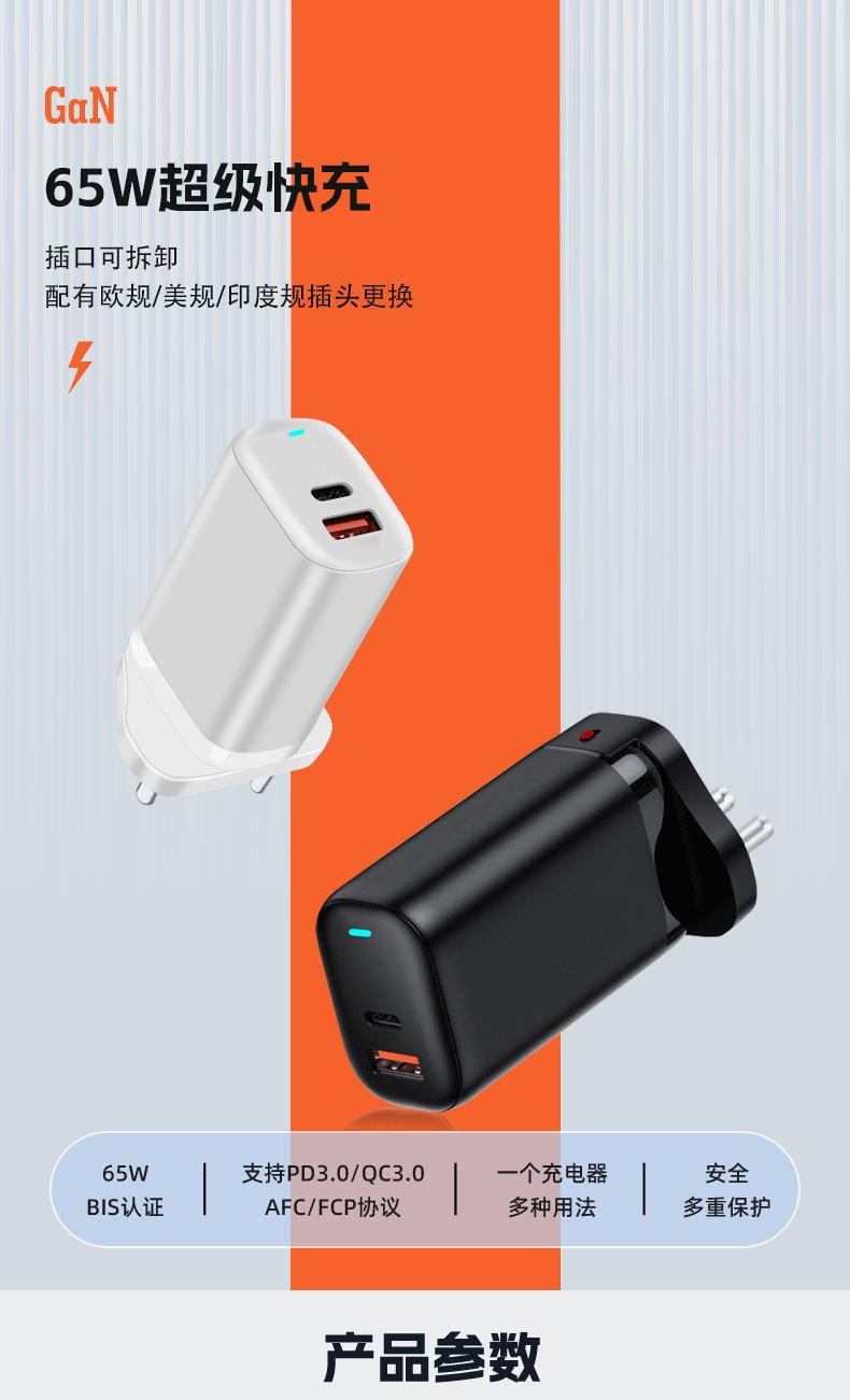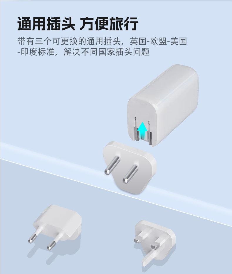3-port PD65W British standard plug + American standard plug + European standard plug + Indian standard plug