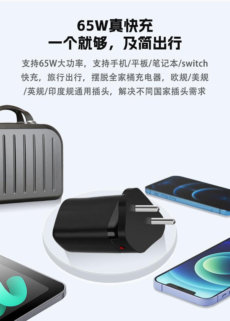 3-port PD65W European standard plug + American standard plug + British standard plug + Indian standard plug