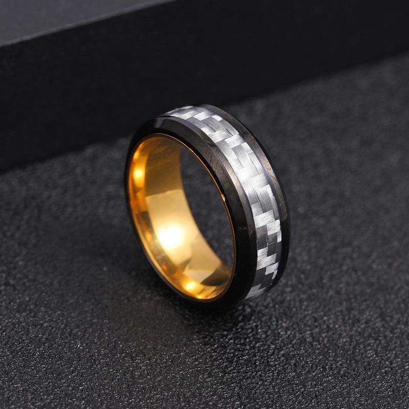 Anillo de hombre nuevo transfronterizo de acero inoxidable moda giratorio fibra de carbono acero titanio anillo joyería fabricantes suministro directo
