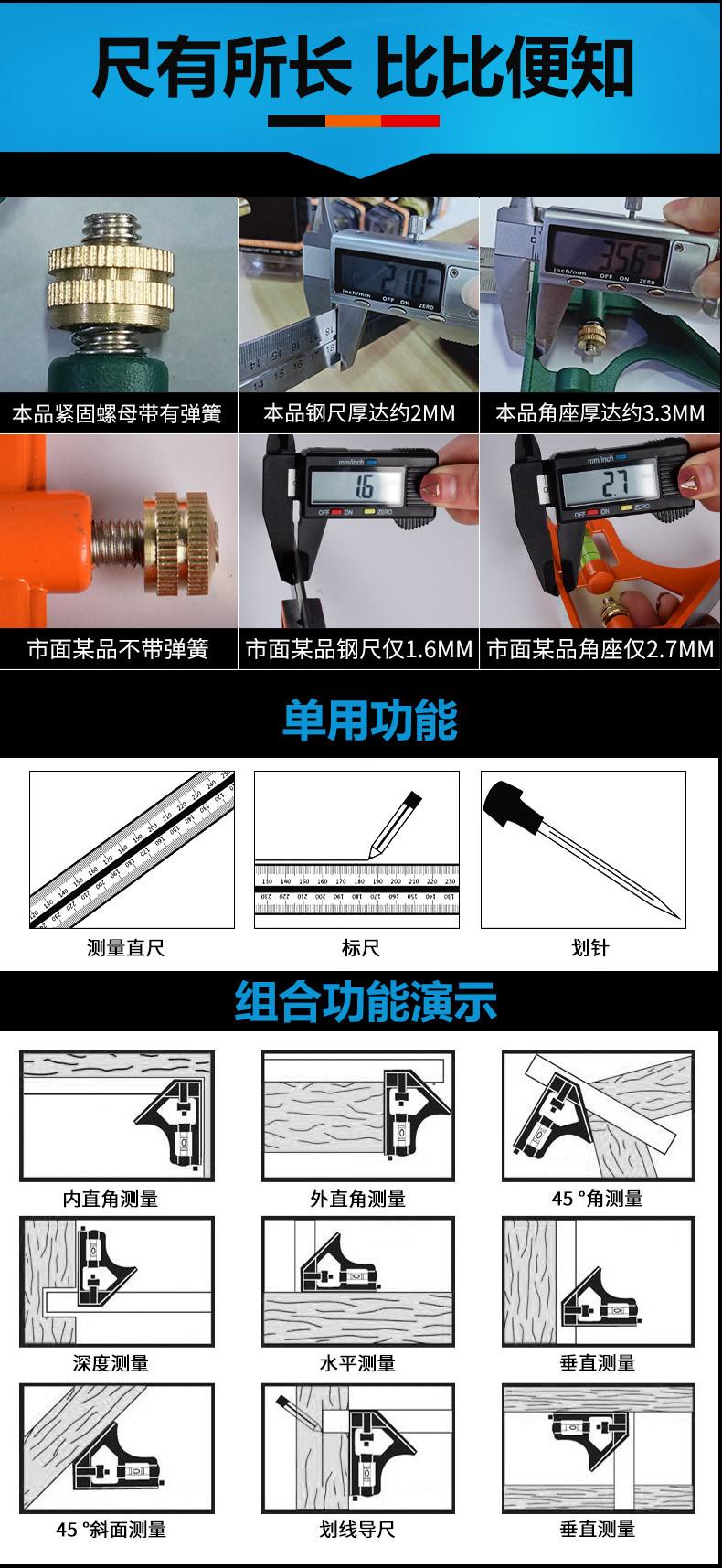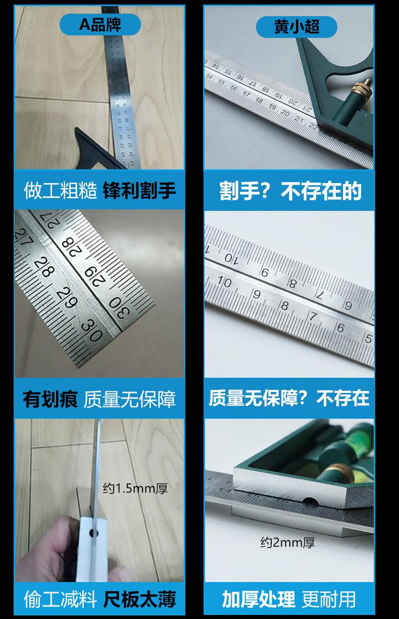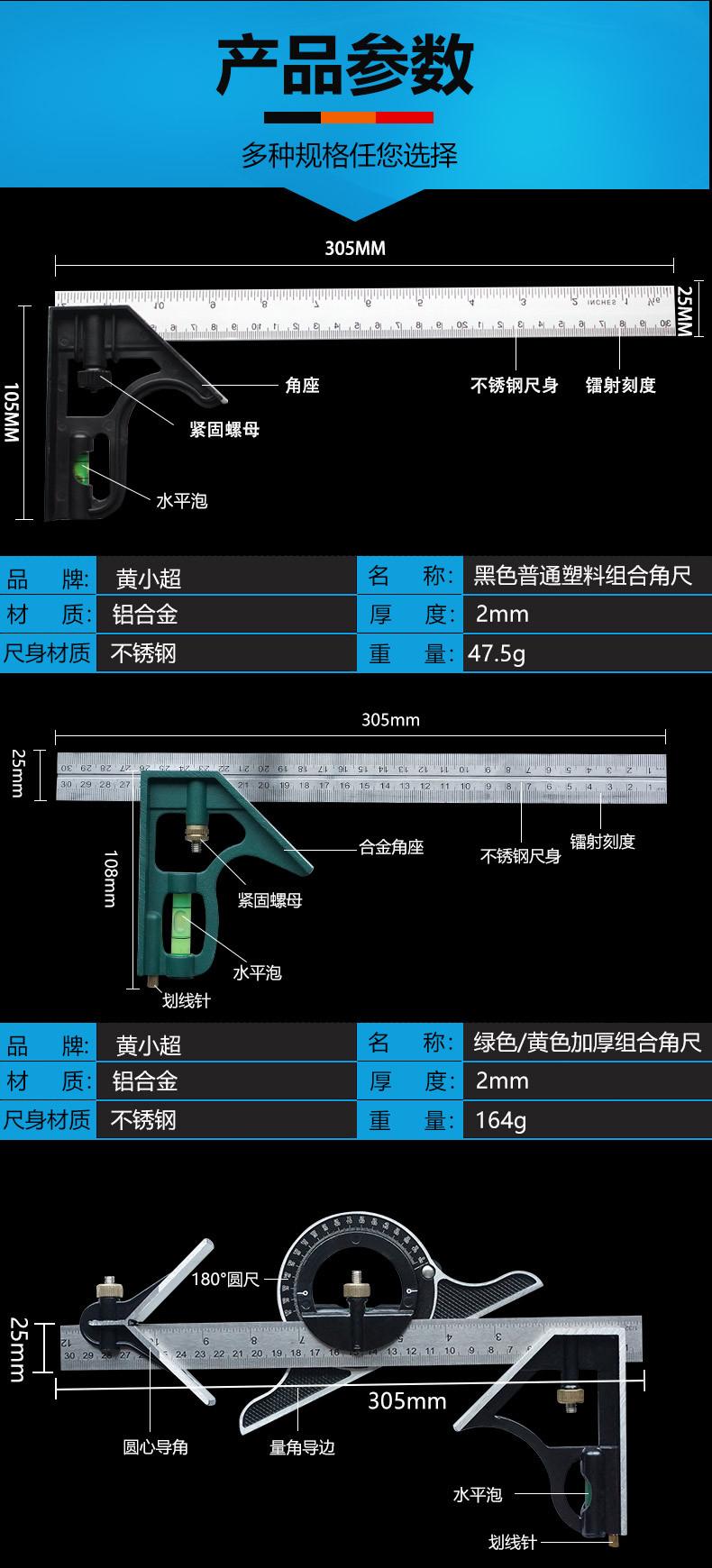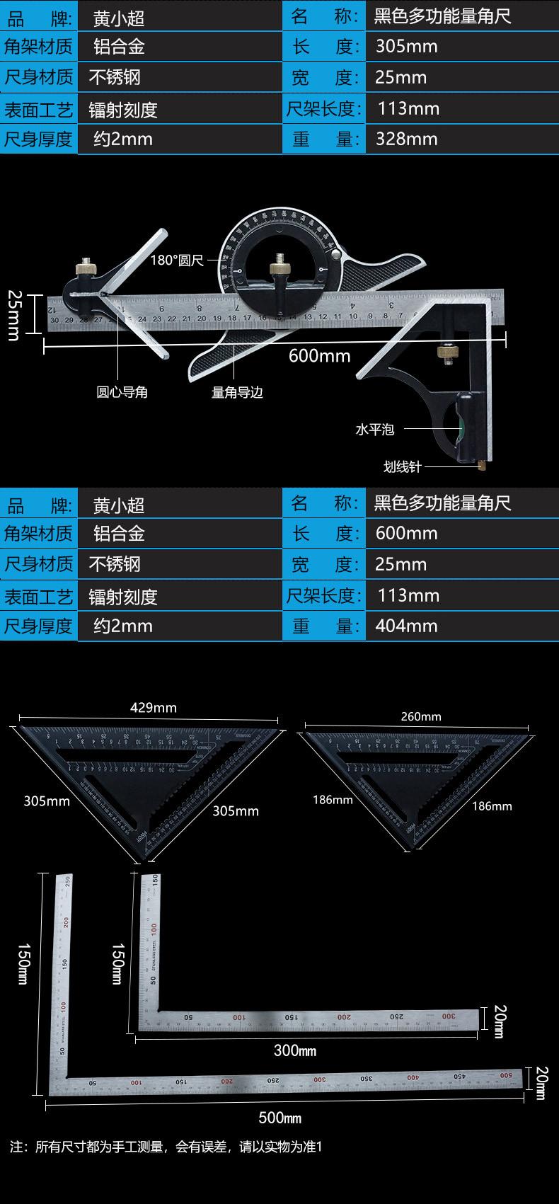 12 inch aluminum alloy triangle ruler, 300mm stainless steel square, 500mm stainless steel square, Black multi...