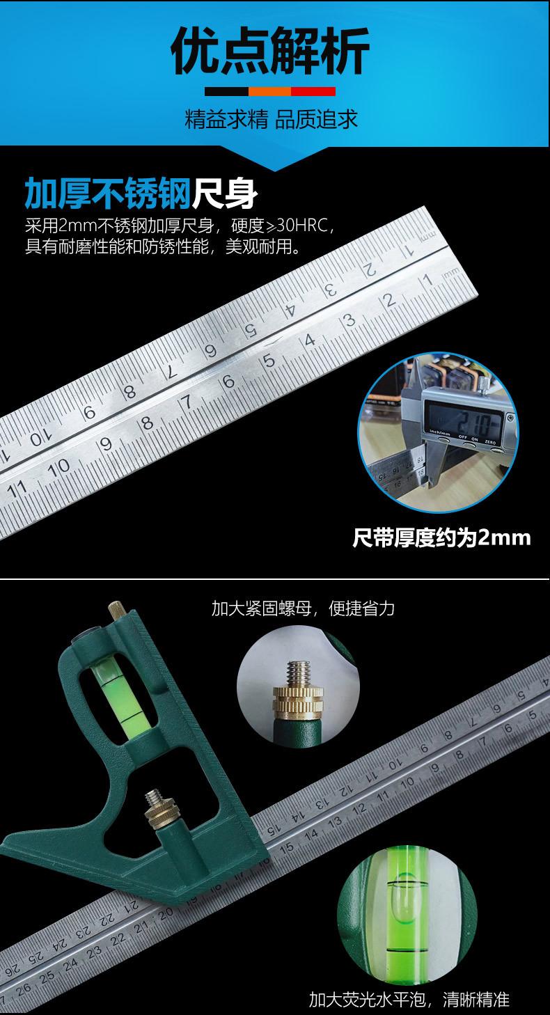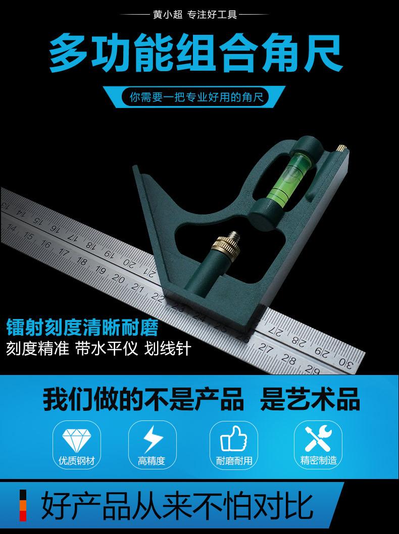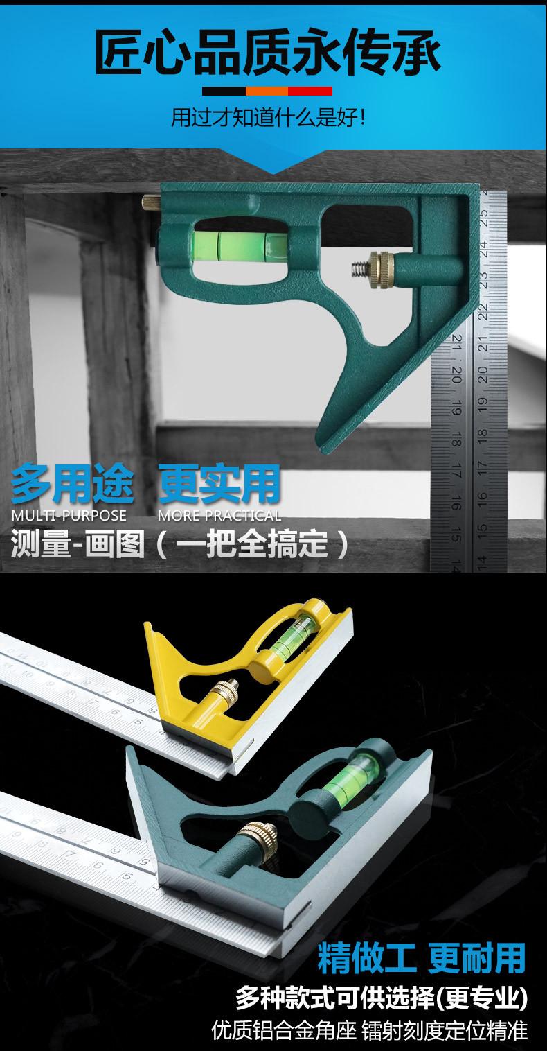 Regla de ángulo combinada de acero inoxidable de 300 mm, regla de ángulo para carpintería con función de 180 grados y nivel para carpintero.