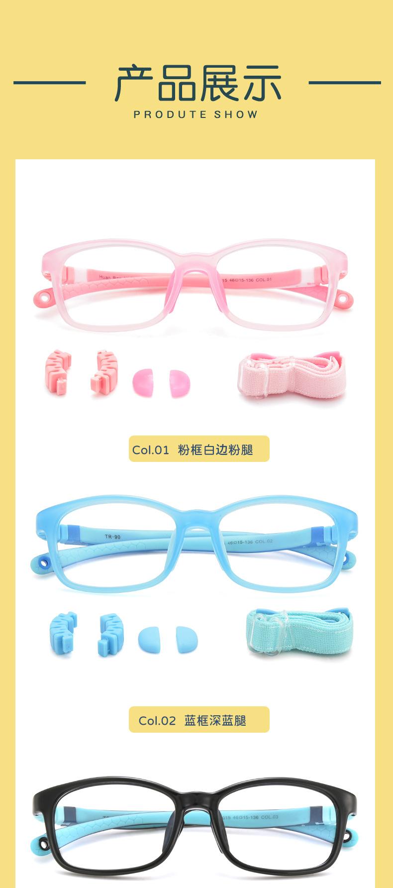 Armazón de gafas para niños de material Tr90 de silicona suave, armazón completo desmontable, almohadillas nasales suaves, se puede equipar con armazón de gafas para miopía