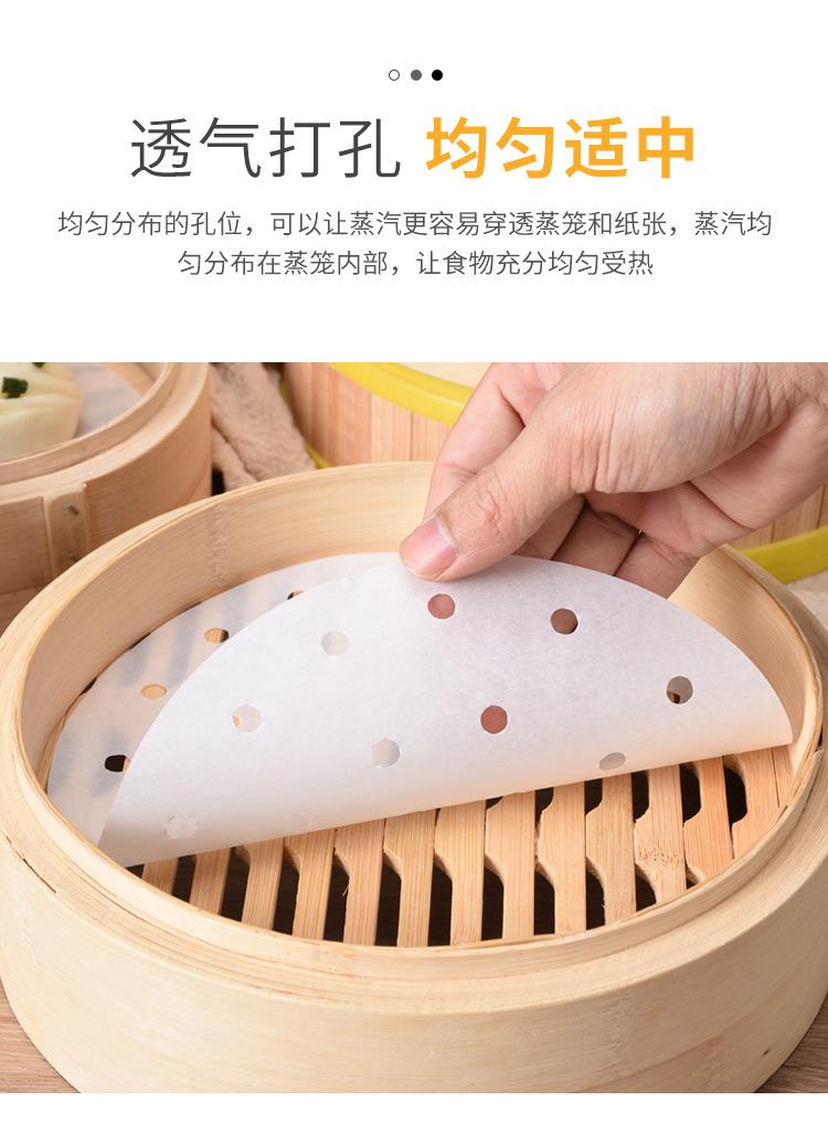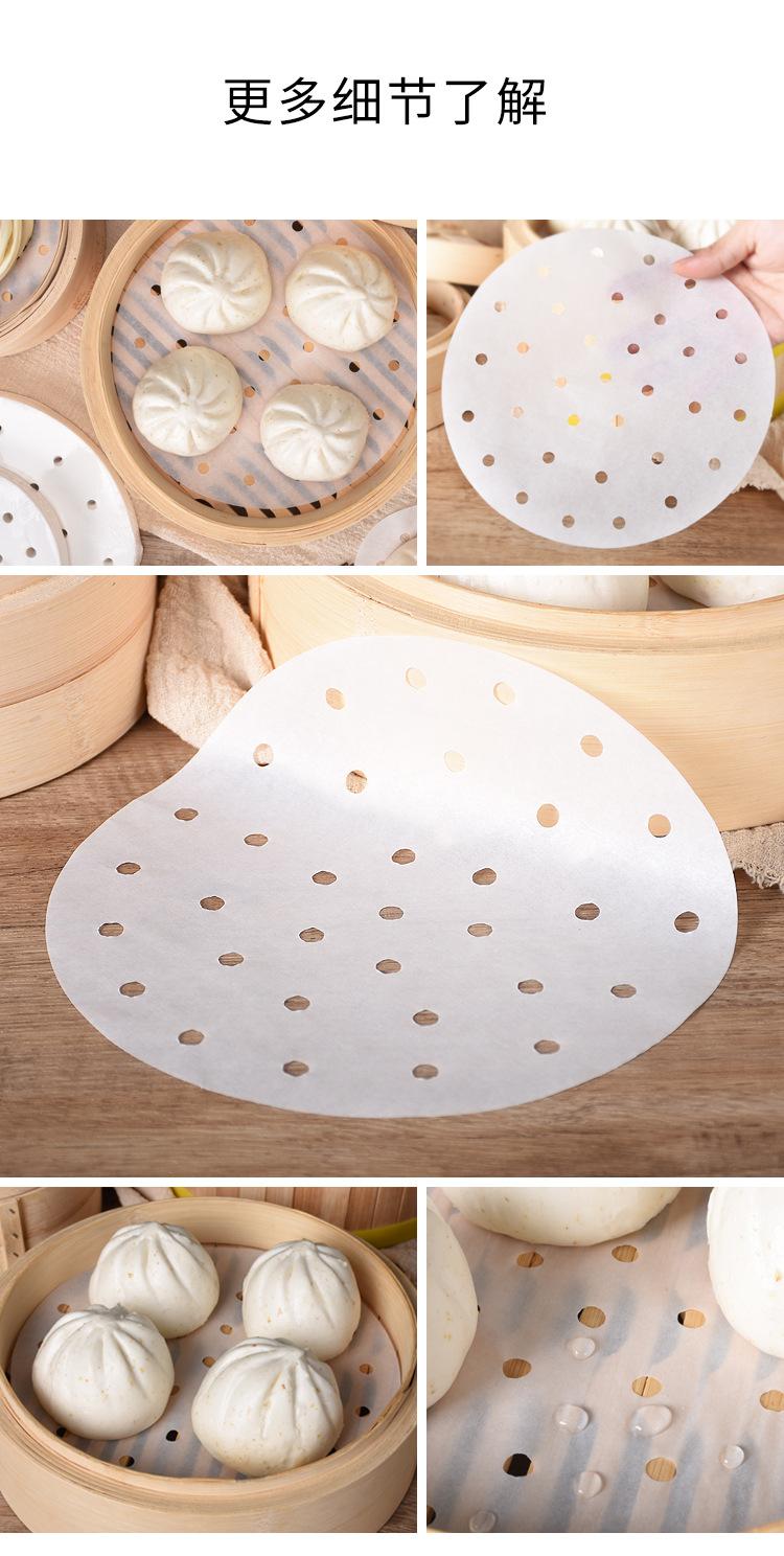 Papel Vaporizador al Por Mayor para Puntos Panecillos Papel Almohadilla para Panecillo al Vapor Antiadherente para Hogar Redondo Vaporizador Freidora de Aire con Agujero Papel Vaporizador