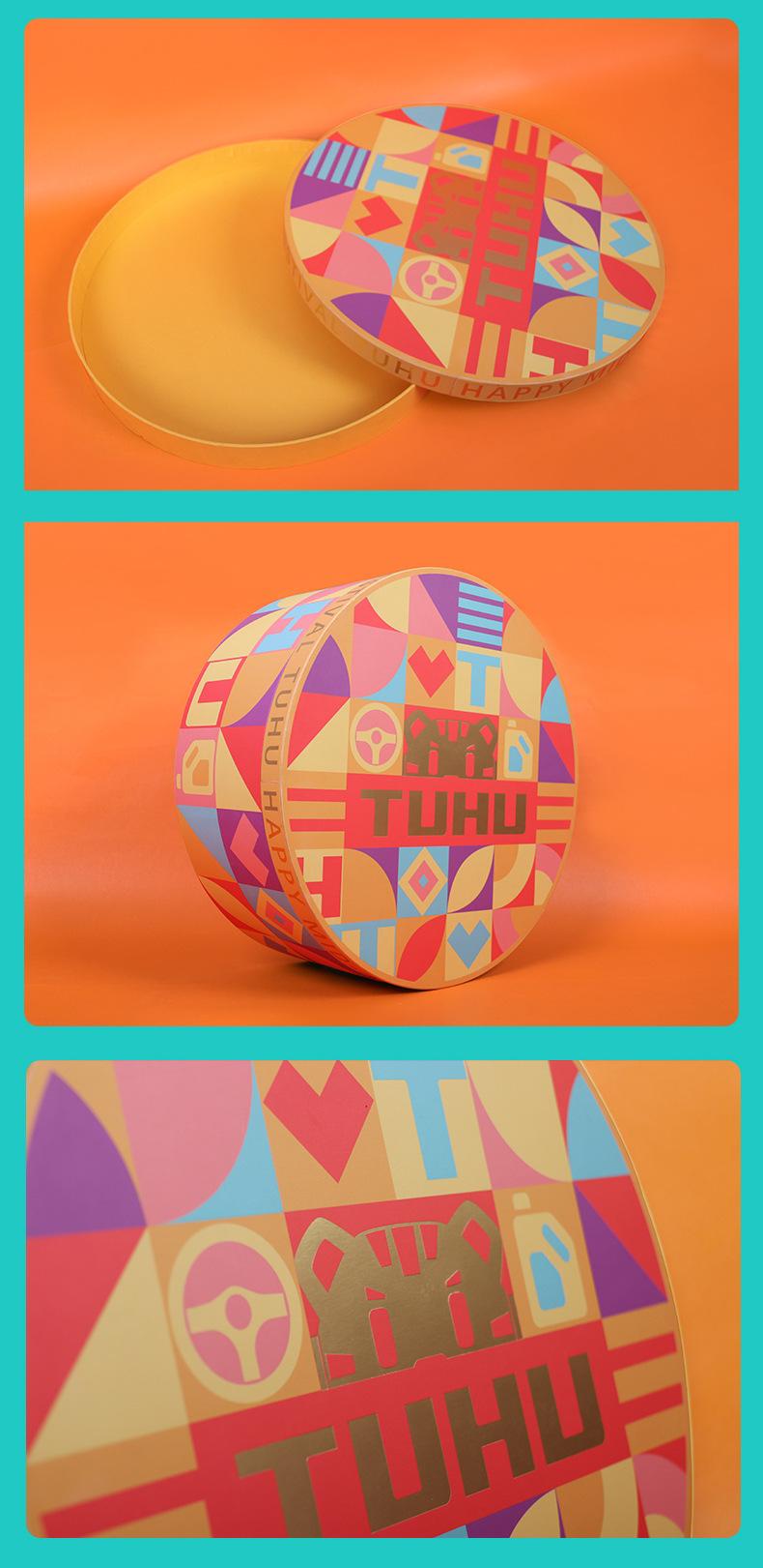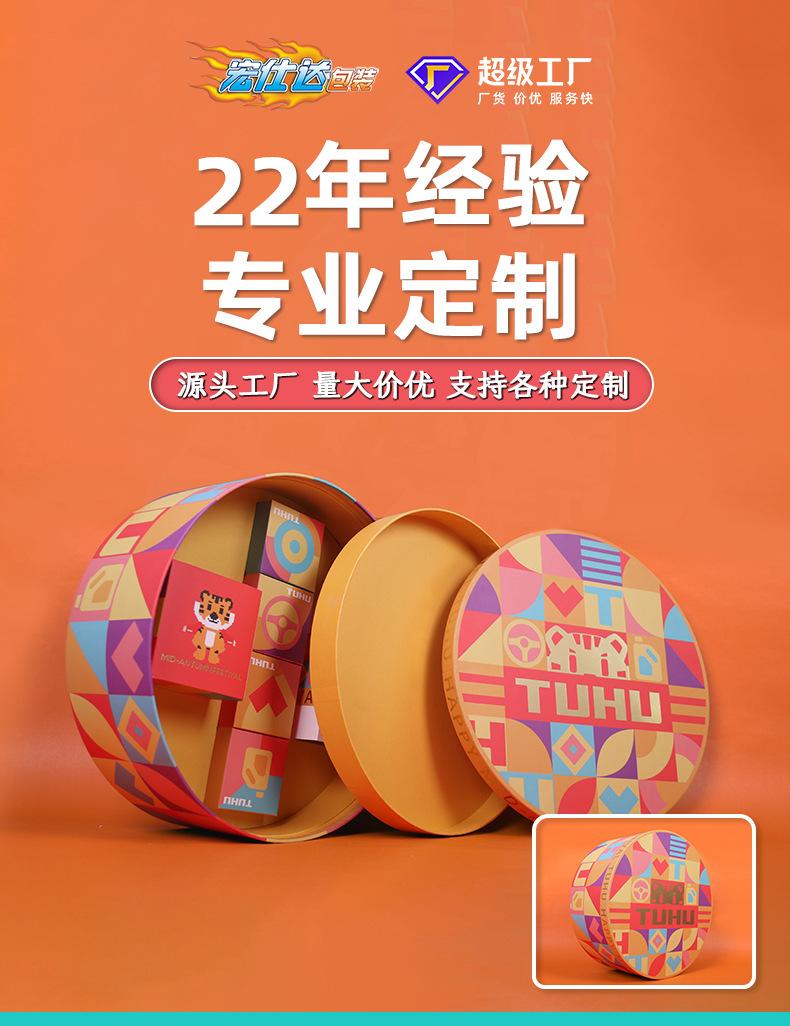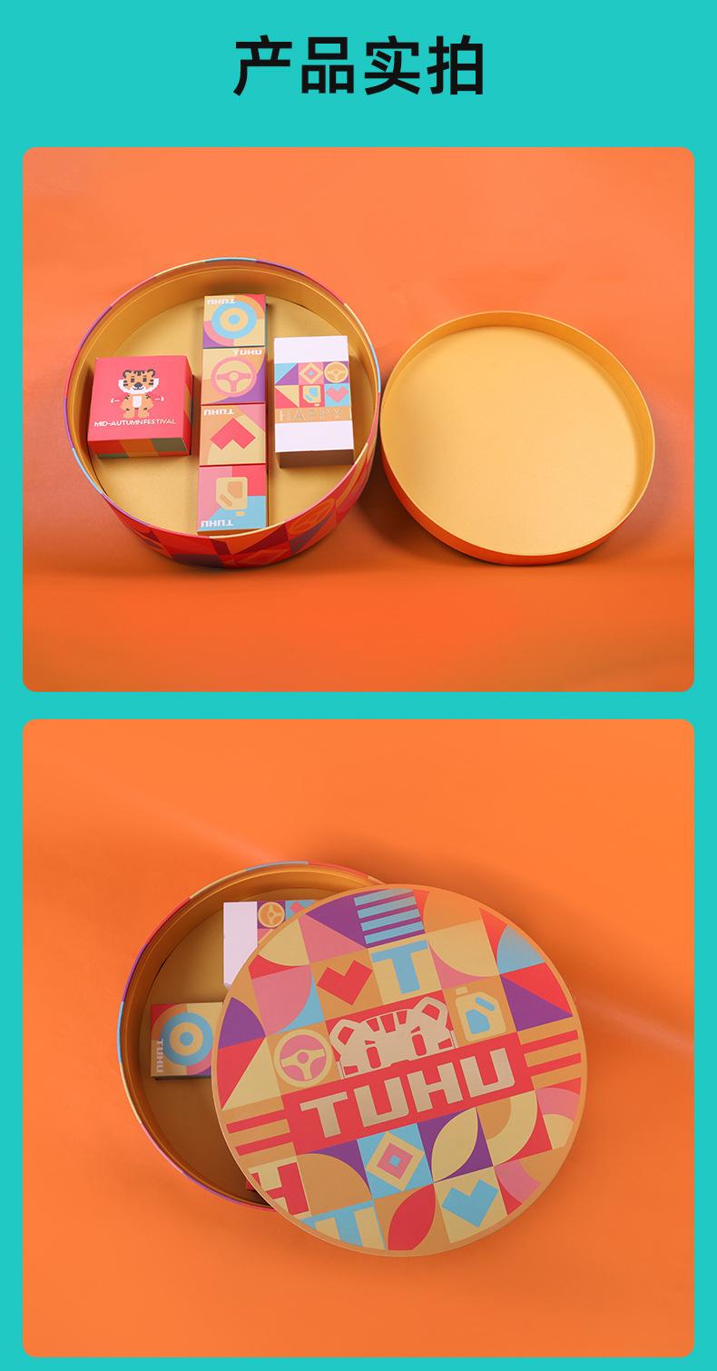 Caja grande de regalo creativa de Año Nuevo de color naranja, caja para envasar alimentos, caja de regalo para productos de salud, caja redonda para pastel de luna con cubierta de cielo y tierra.