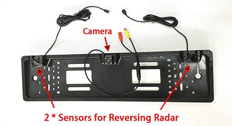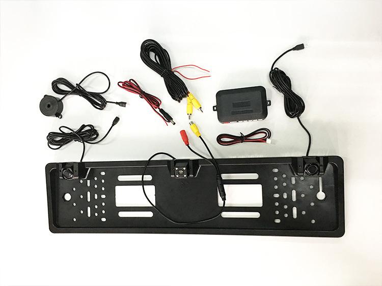 Cámara para Coche con Marco Europeo de Alta Definición con Zumbador Bibi Radar de Reversa 2-en-1 Imagen de Reversa Vista Trasera