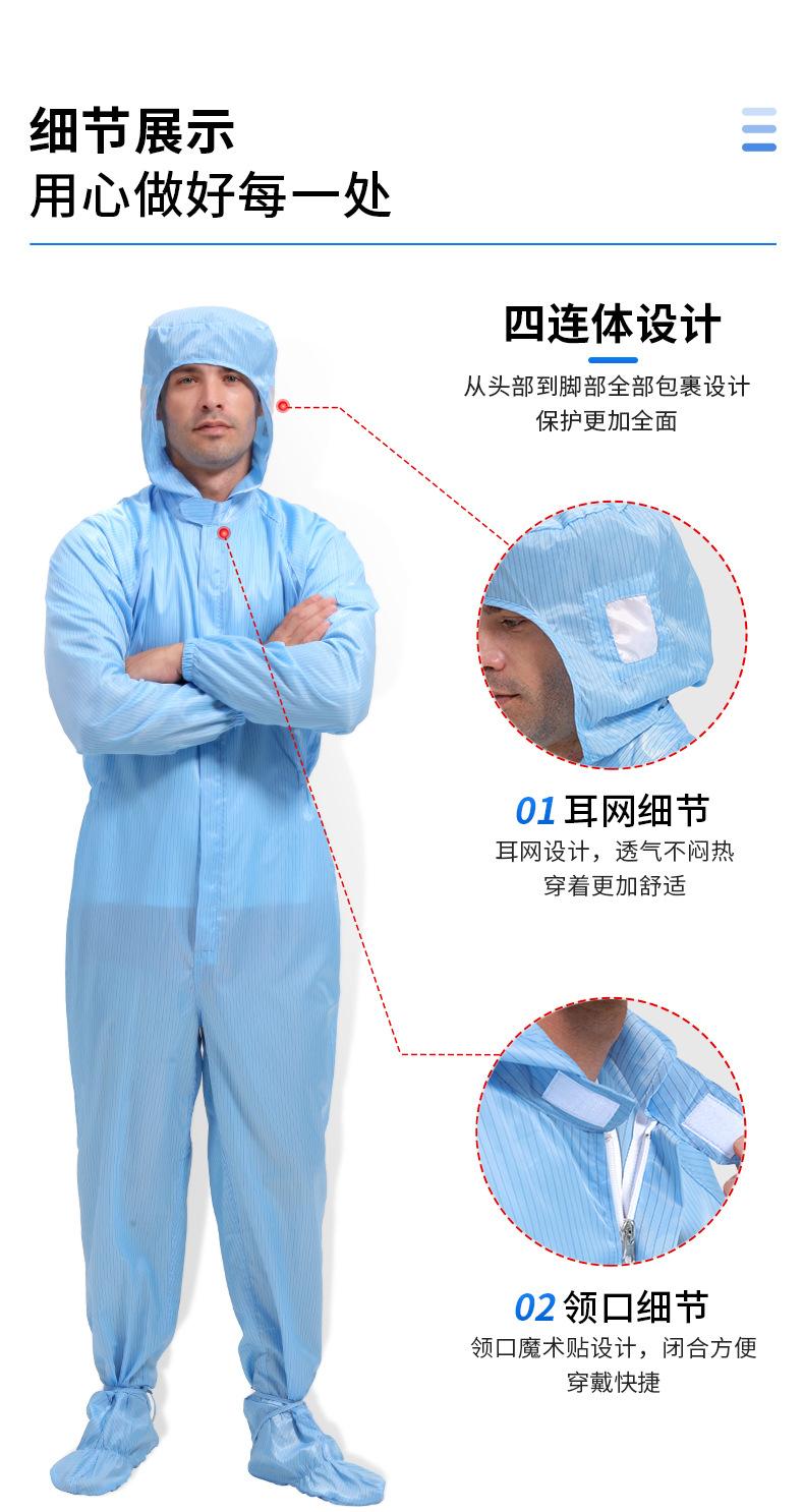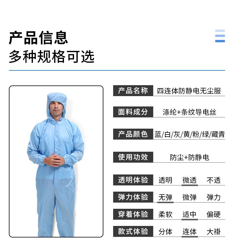 Mono antiestático de cuatro piezas con capucha, ropa protectora limpia y sin polvo, ropa antipolvo electrostática, ropa de terapia de arena de cuerpo entero de una pieza