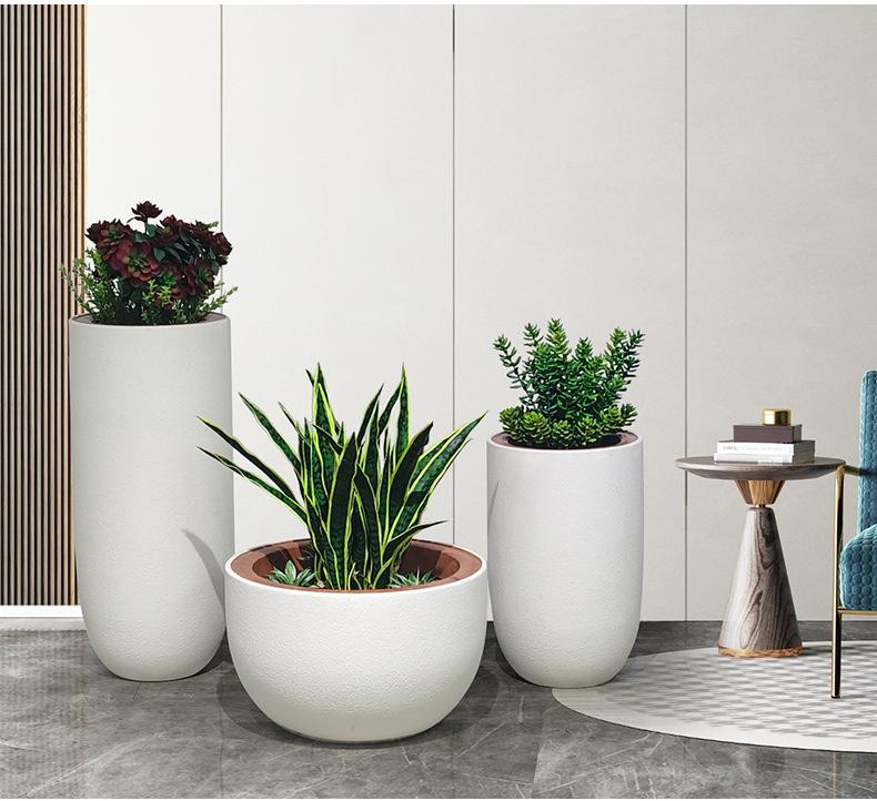 Fabricante Exterior Jarrón Redondo Grande Combinación Interior Planta Verde Maceta Simple Fibra de Vidrio Maceta Adornos de Pie