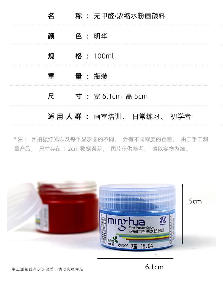 Nombre del producto: Pigmento gouache Minghuaxin 95