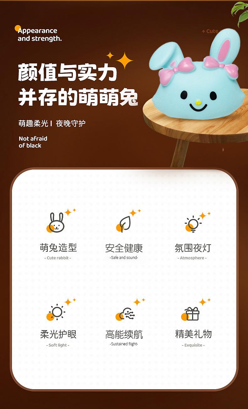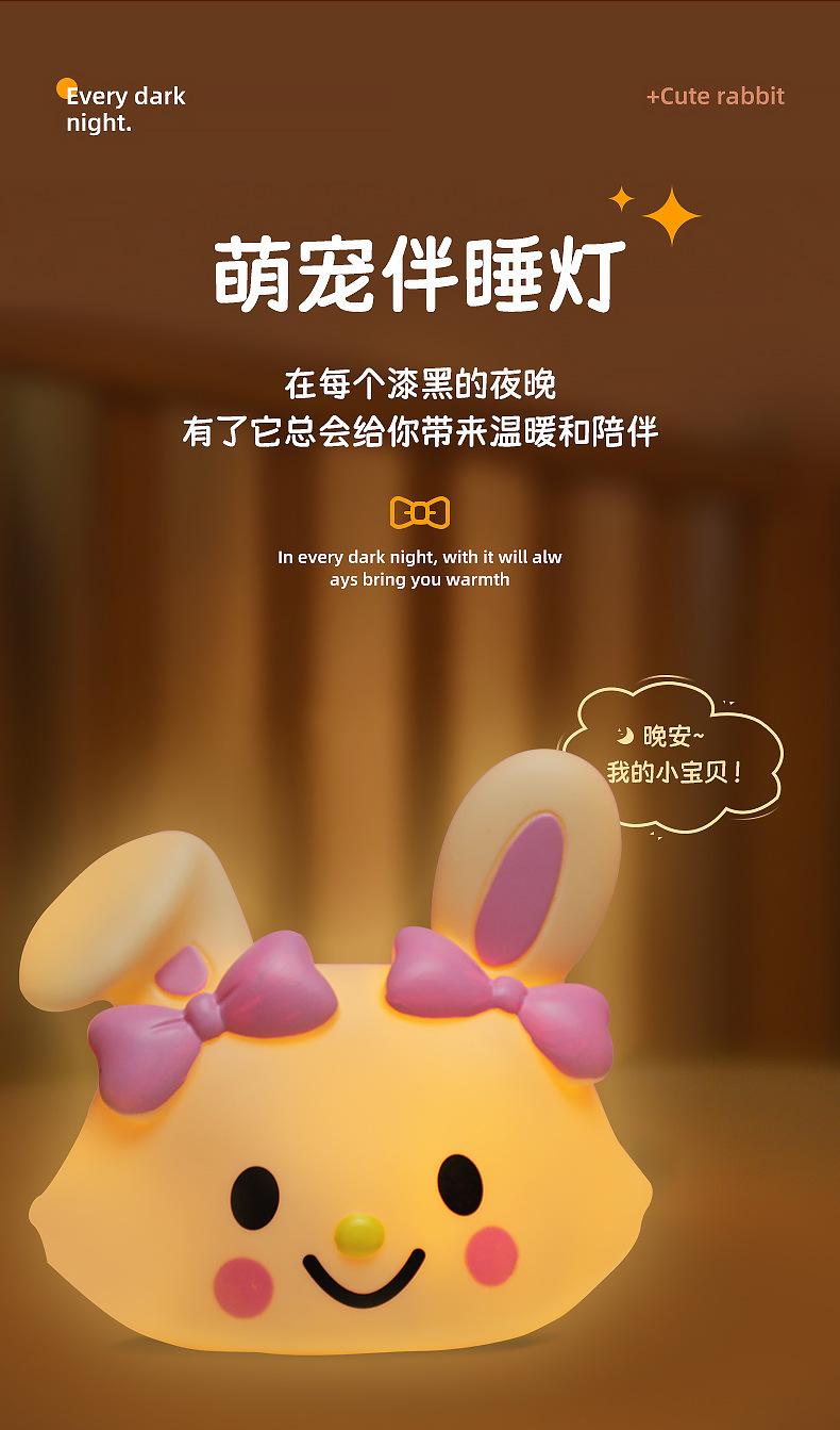 Fabricante de Luz Nocturna de Conejo de Dibujos Animados Lámpara Creativa de Mesa de Noche para Dormitorio Infantil Regalo de Figura de Cumpleaños Venta al por Mayor Punto