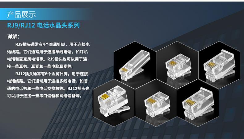 Seis tipos de cabezas de cristal chapadas en oro de dos piezas de cuerpo corto personalizadas de Lightning, al por mayor, los fabricantes de fuentes 8P8C pueden personalizar el procesamiento