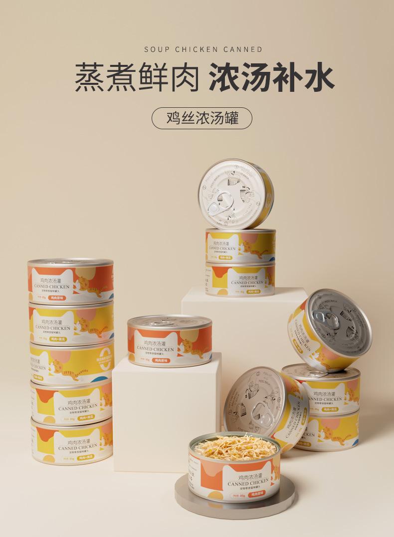 Latas de sopa de pollo en caja para gatos, nutrición enlatada, hidratación para gatos, bocadillos para gatitos, arroz mixto, comida húmeda, comida para mascotas al por mayor