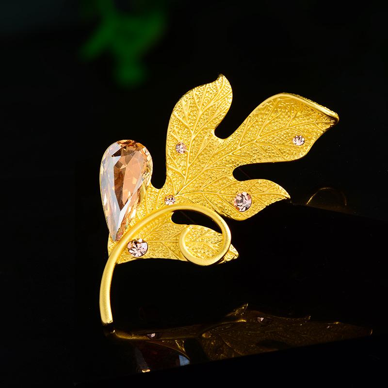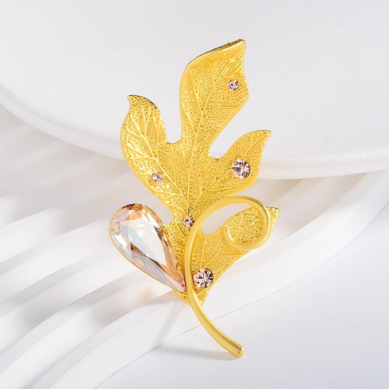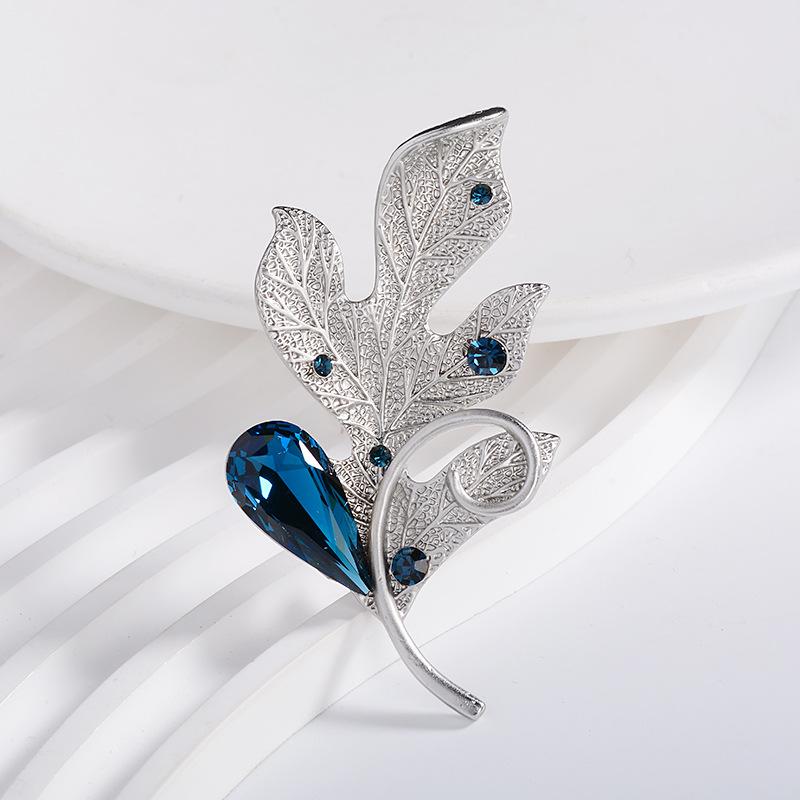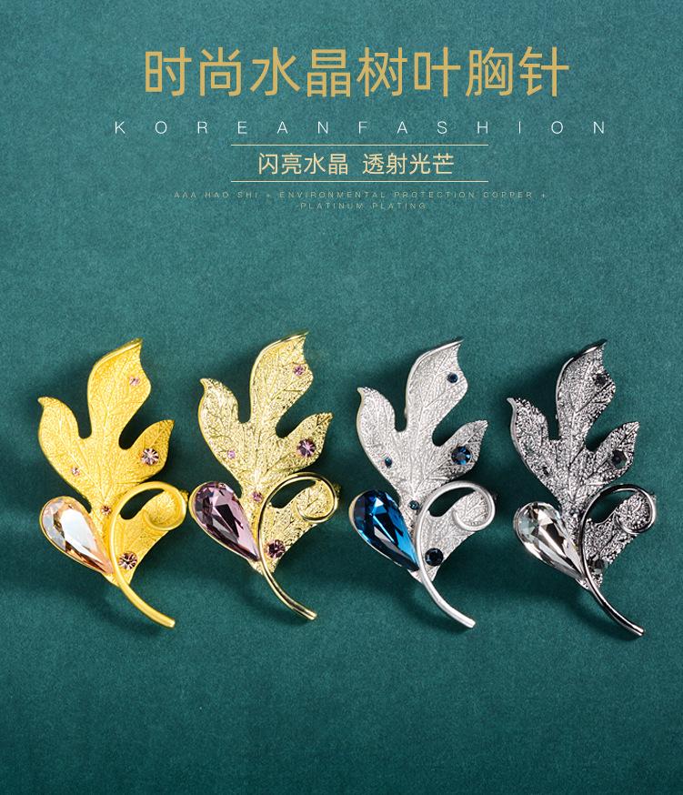Compra Broche de ropa de alta gama europeo y americano estilo coreano cristalino nuevo hoja pluma ramillete pin accesorios para abrigo suéter que combinan con todo al por mayor en Joom.pro
