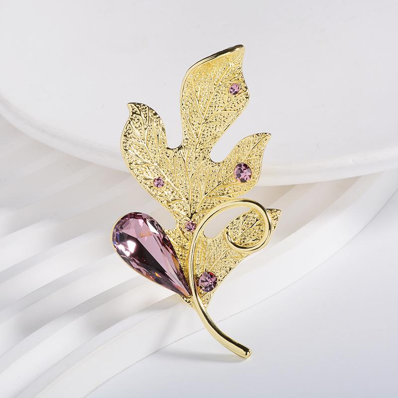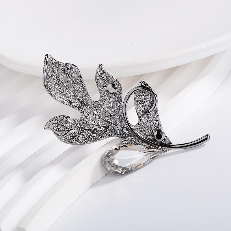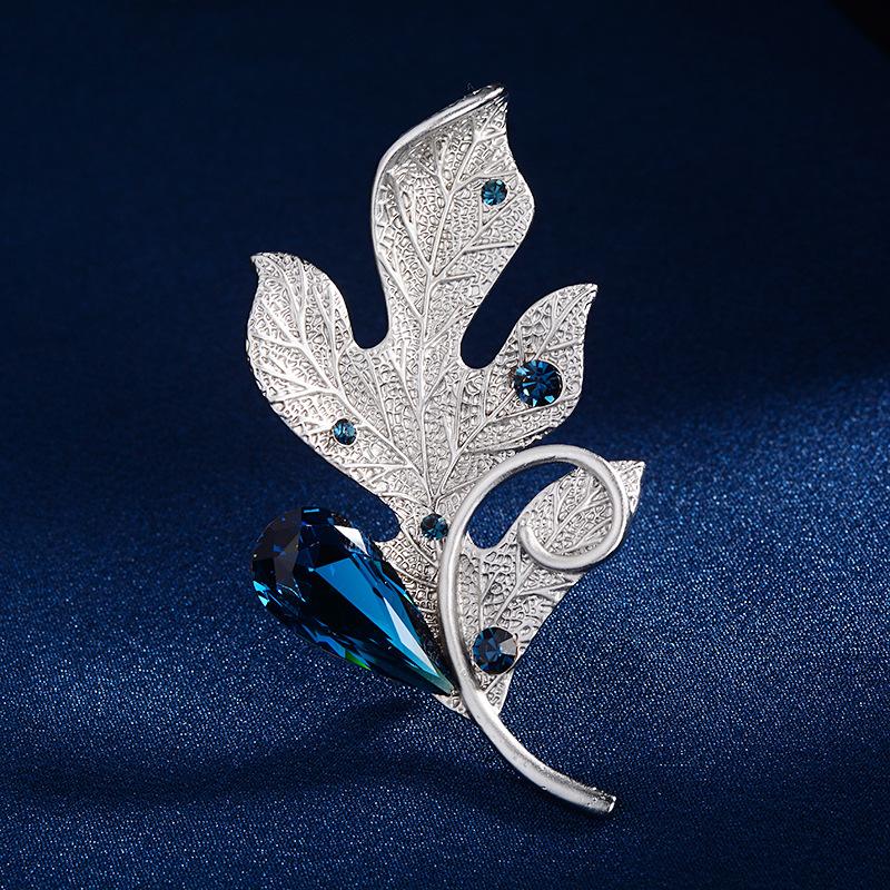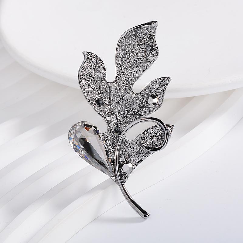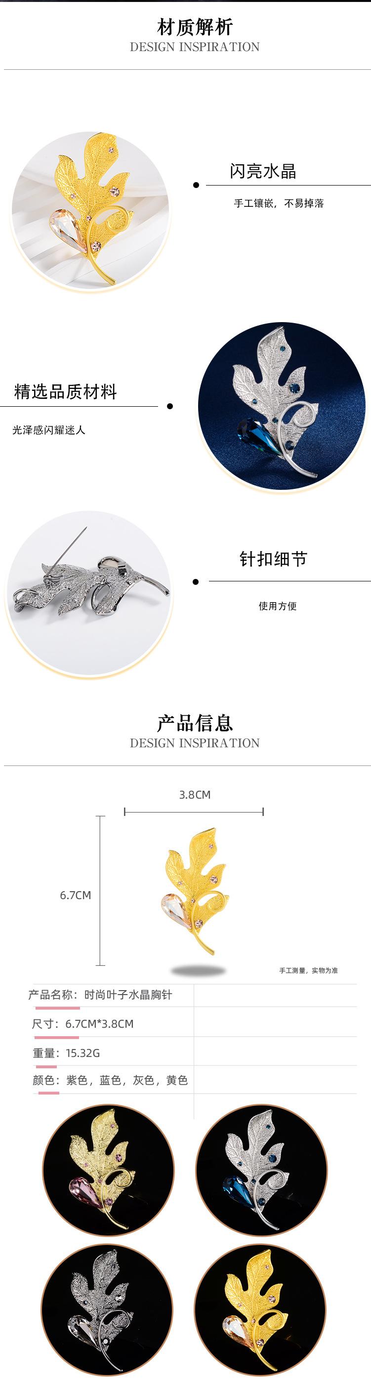 Compra Broche de ropa de alta gama europeo y americano estilo coreano cristalino nuevo hoja pluma ramillete pin accesorios para abrigo suéter que combinan con todo al por mayor en Joom.pro