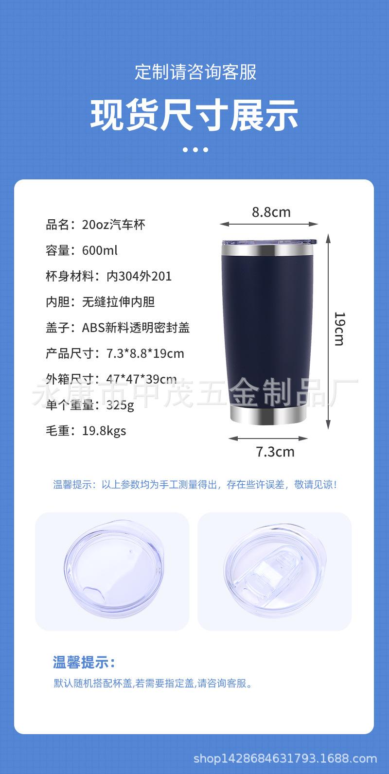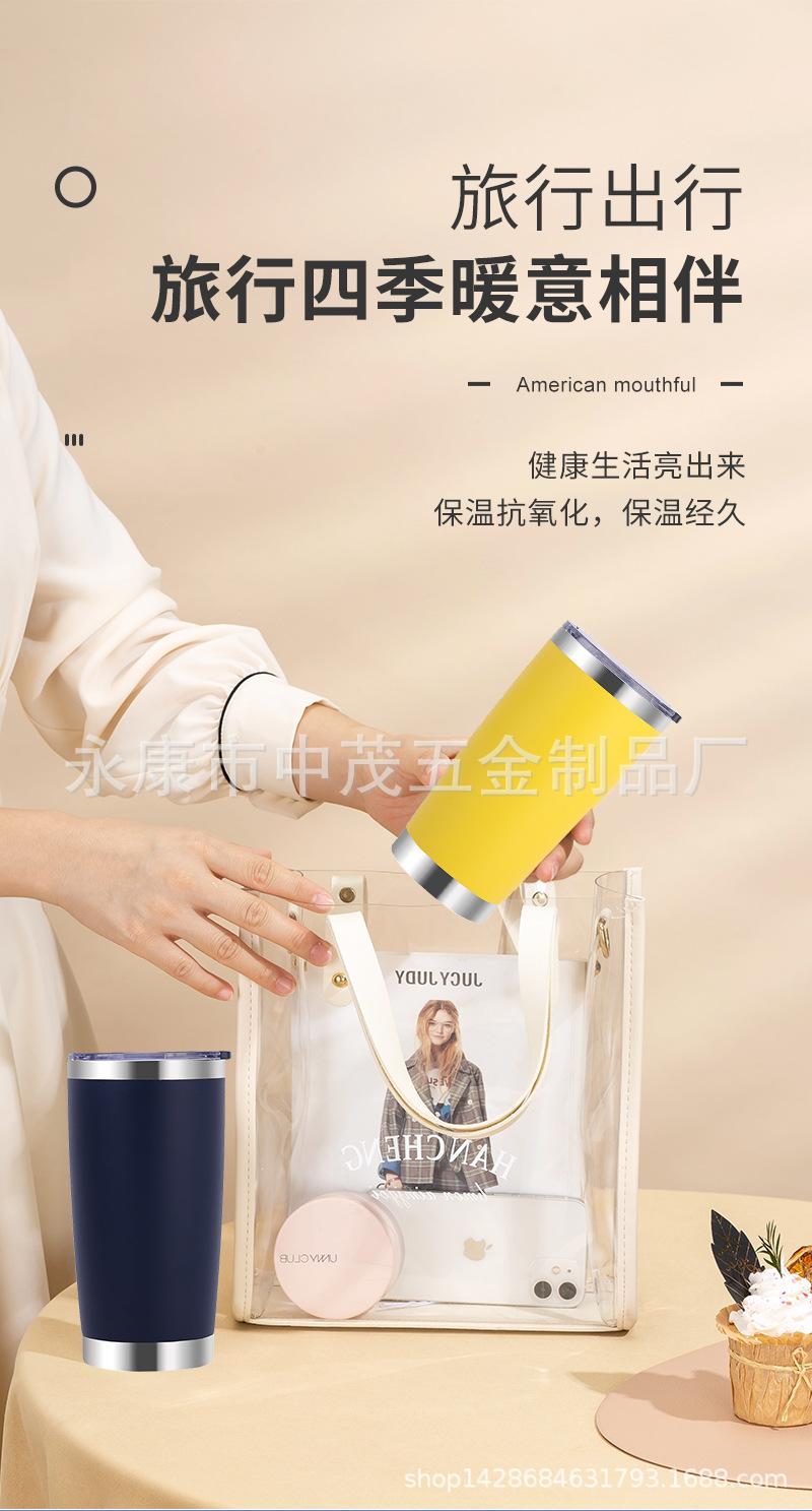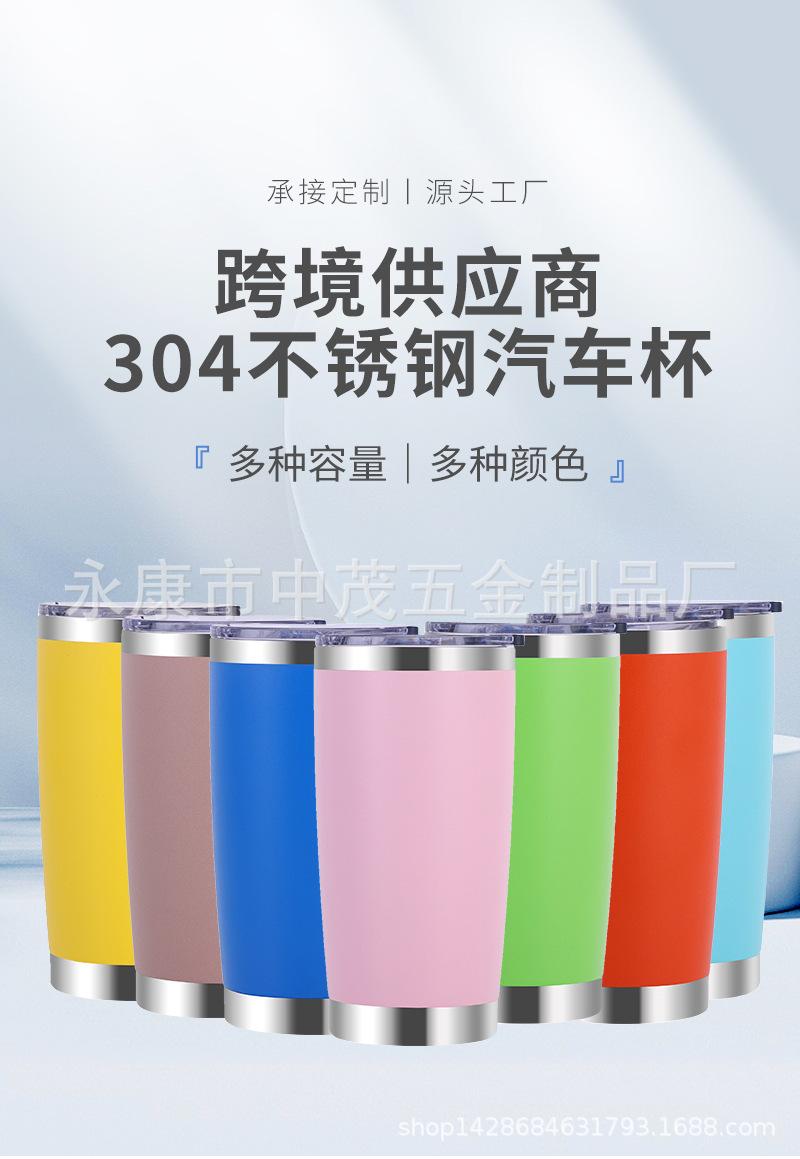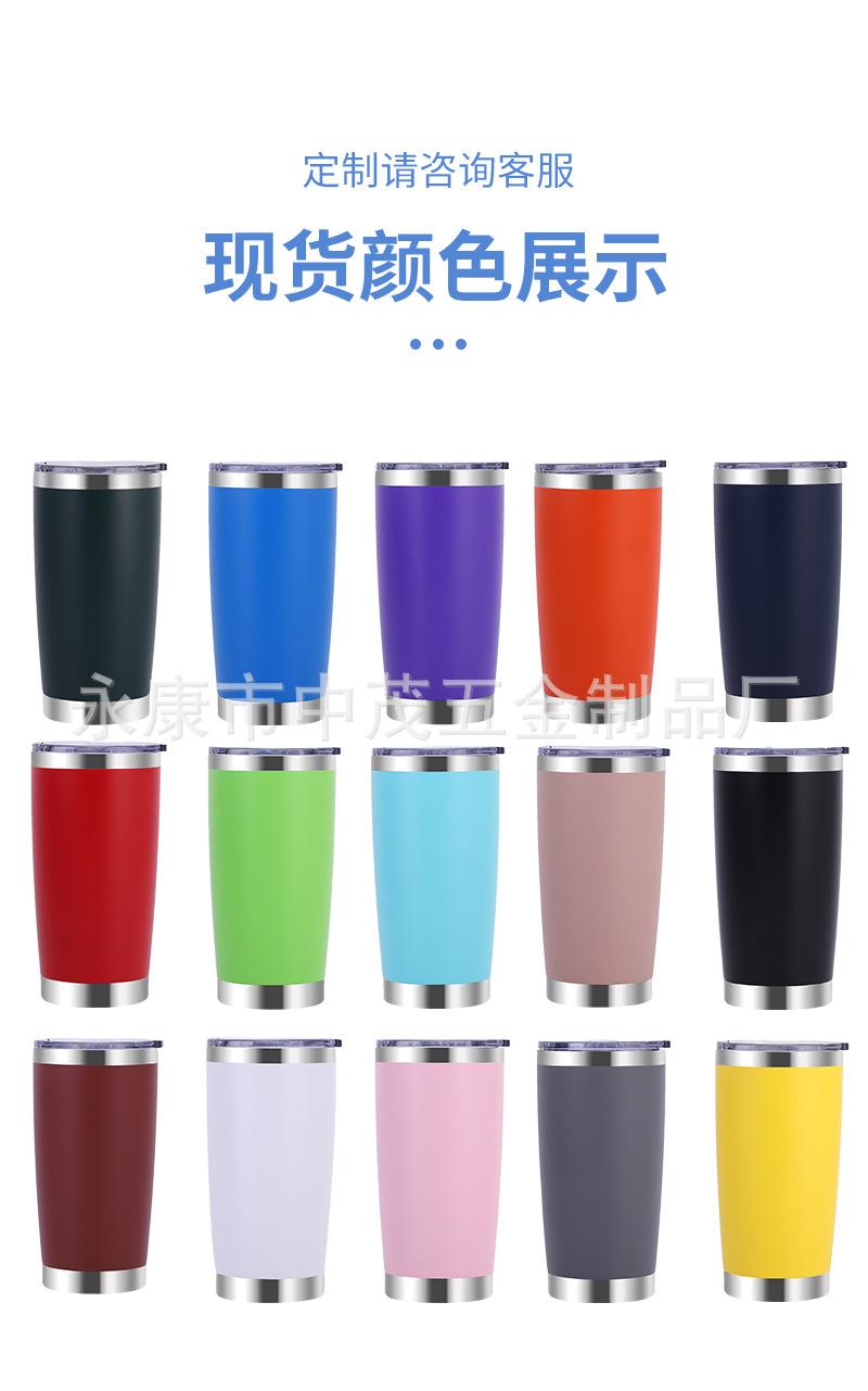 Taza para automóvil de gran capacidad transfronteriza de 20 oz, aislamiento de acero inoxidable 304, taza de hielo frío, taza con pajita para automóvil, personalización de taza