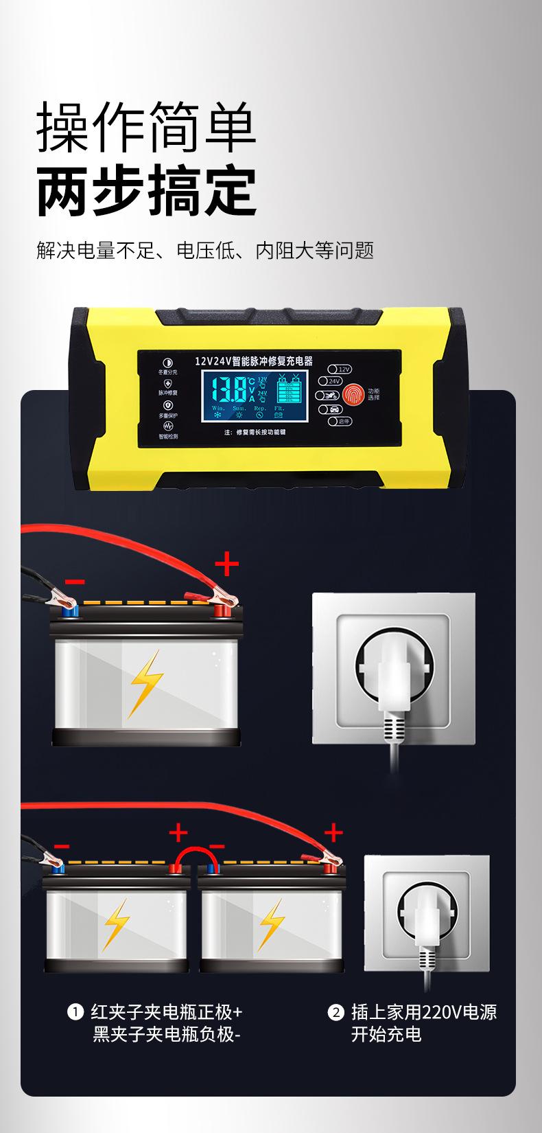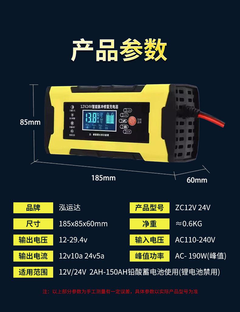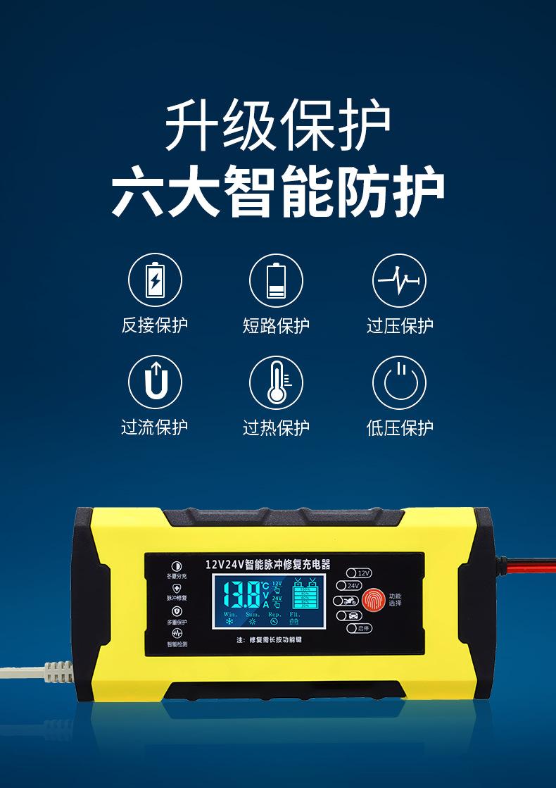 Cargador de batería de motocicleta de vapor al por mayor de fábrica 12V24V10A universal completamente inteligente de reparación cargador AGM
