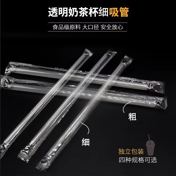 Pajita desechable de plástico transparente para té con leche y perlas negras transparentes, gruesa, para bebidas, embalaje independiente, fina.