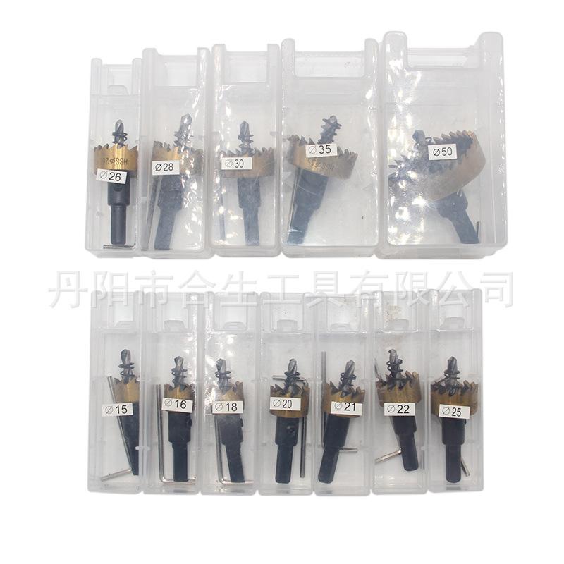 Especificaciones y configuración del producto:16mm,18mm,20mm,22mm,25mm,26mm,28mm,30mm,35mm,40mm,45mm,50mm,53mm cada uno un juego (cada broca de corona de especificación incluye broca de corona, llave pequeña, embalaje de caja de plástico transparente).