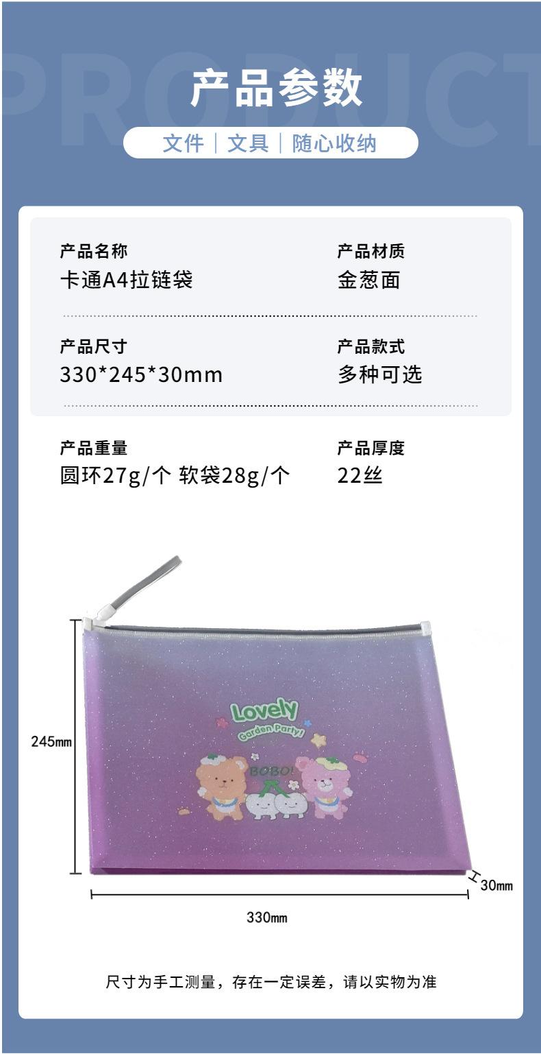 Bolsa de Archivo Transparente de Dibujos Animados A4 Bolsa de Información de Borde de Alta Gama Bolsa de Almacenamiento de Plástico PP para Oficina Estudiante Bolsa de Papelería
