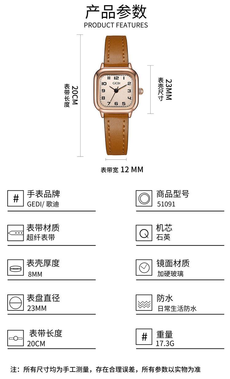 Compra Reloj Goldie de estilo coreano para mujer, con esfera cuadrada pequeña y exquisita, con correa sencilla y esfera cuadrada pequeña. al por mayor en Joom.pro