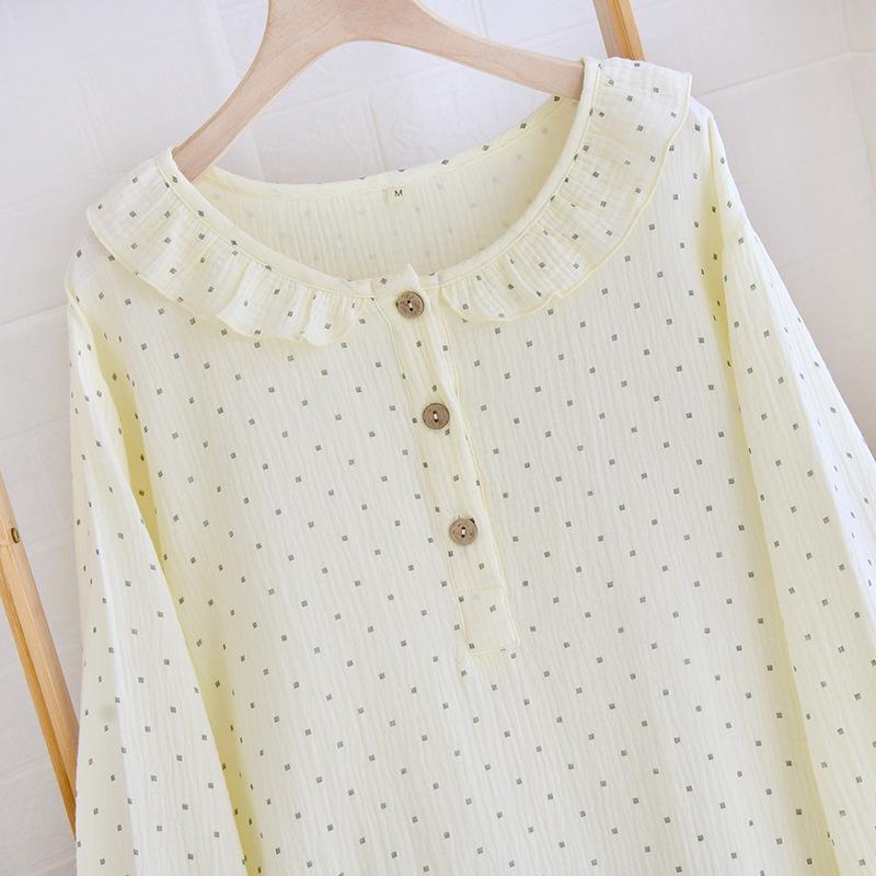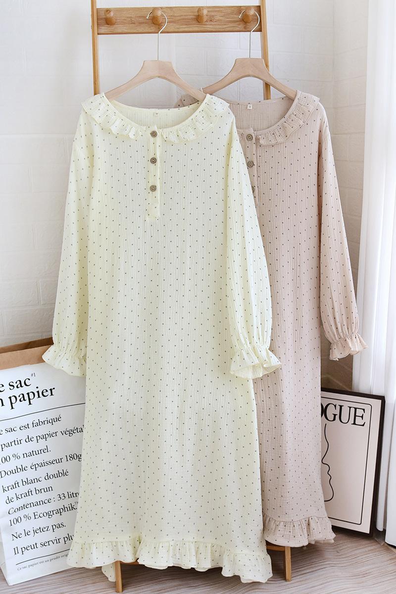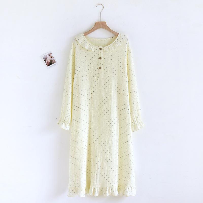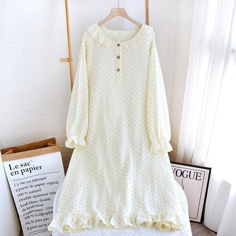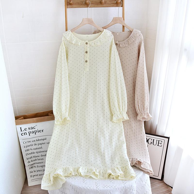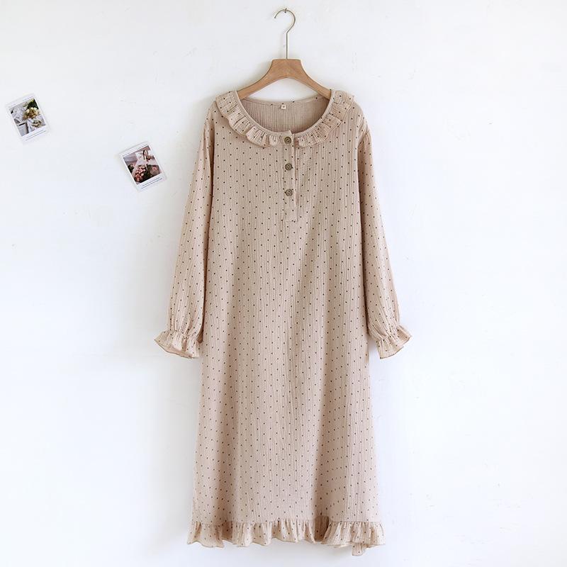 Camisón de algodón para mujer, vestido de verano de manga larga, camisón de crepé de algodón, falda holgada cómoda, ropa de abrigo, vestido para estar en casa