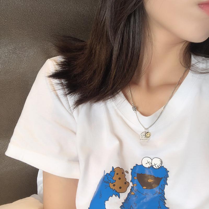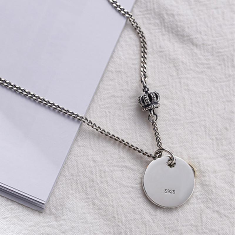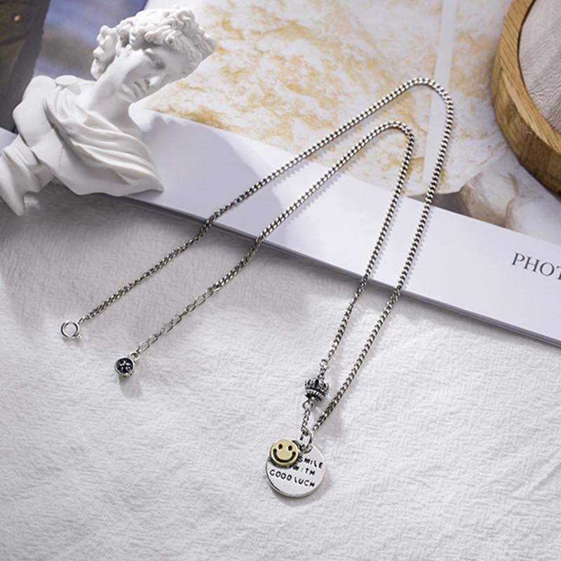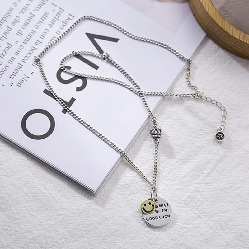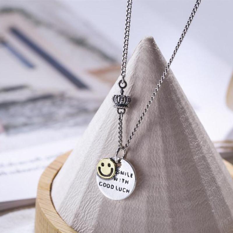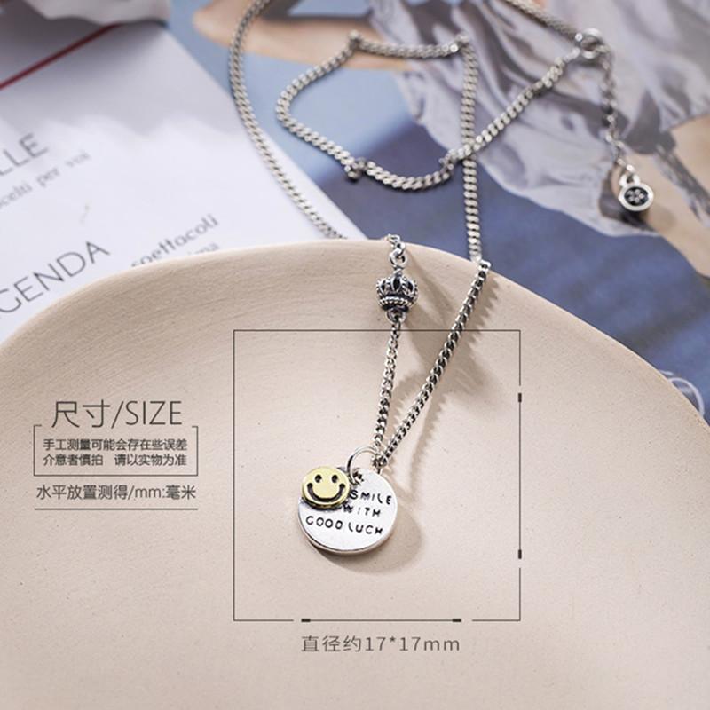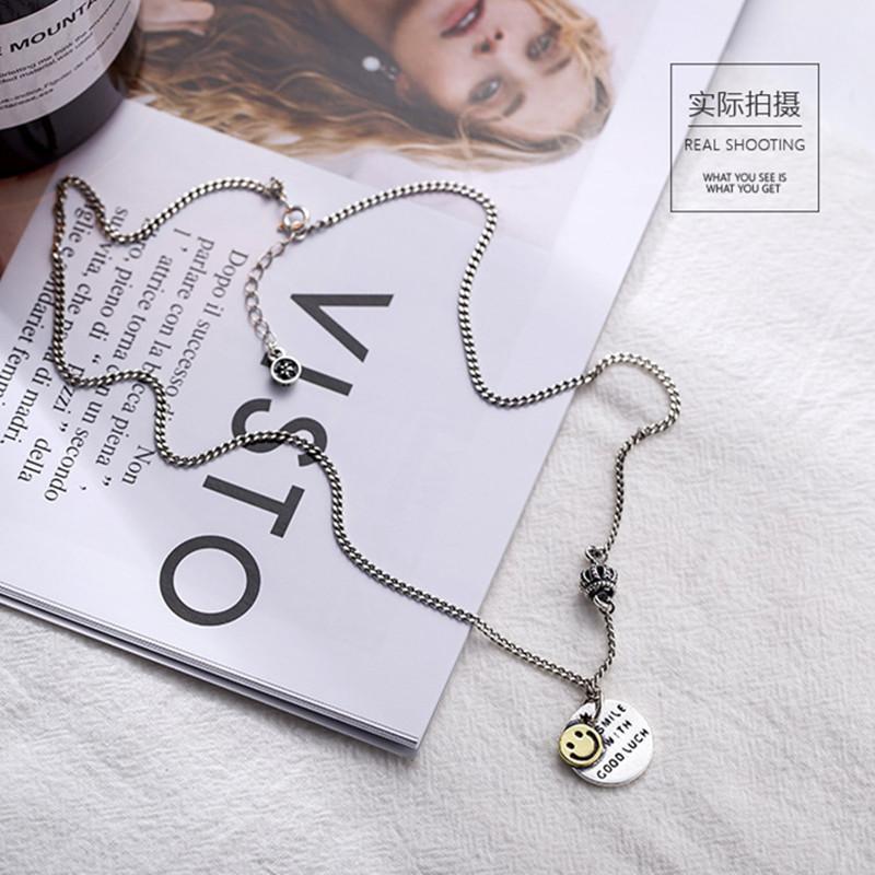 Collar Coreano Dongdaemun Plata s925 Smiley Corona Cadena Larga de Lana para Mujer Cadena Retro Cadena Clavícula