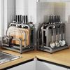 Estante de almacenamiento multifuncional de cocina, tabla de cortar, cuchillo de cocina, acero inoxidable, soporte para tapas de ollas, almacenamiento, removible, vertical, soporte para cuchillos de vajilla