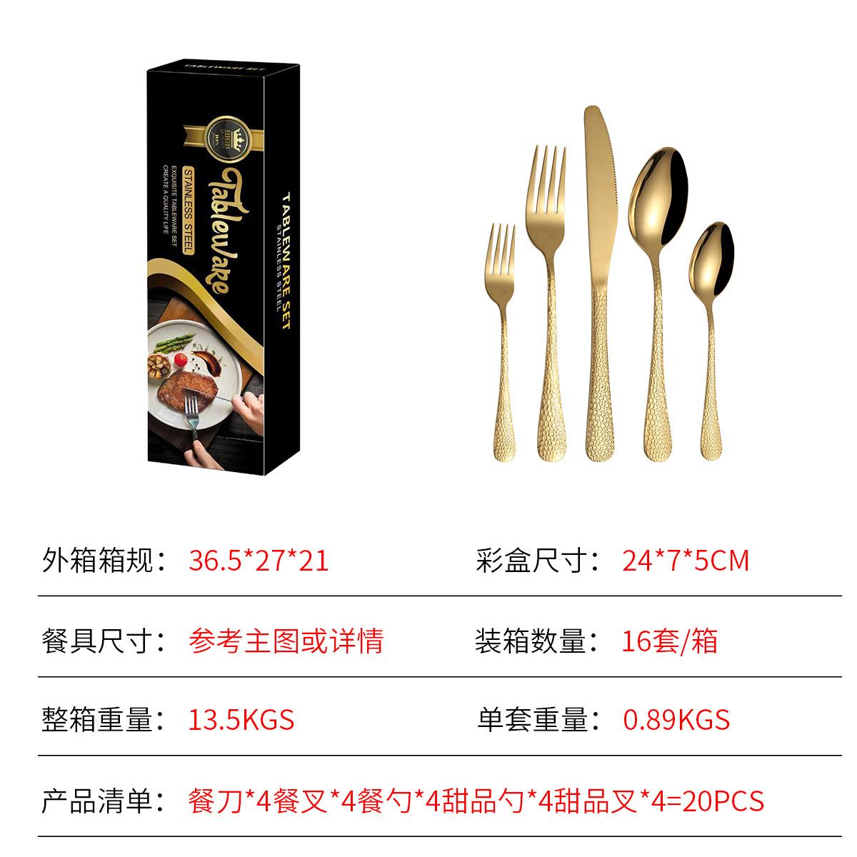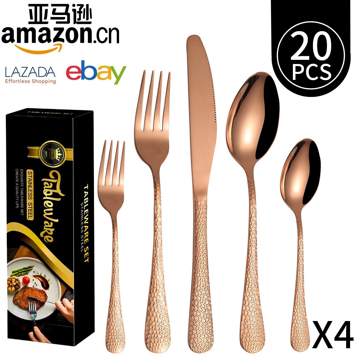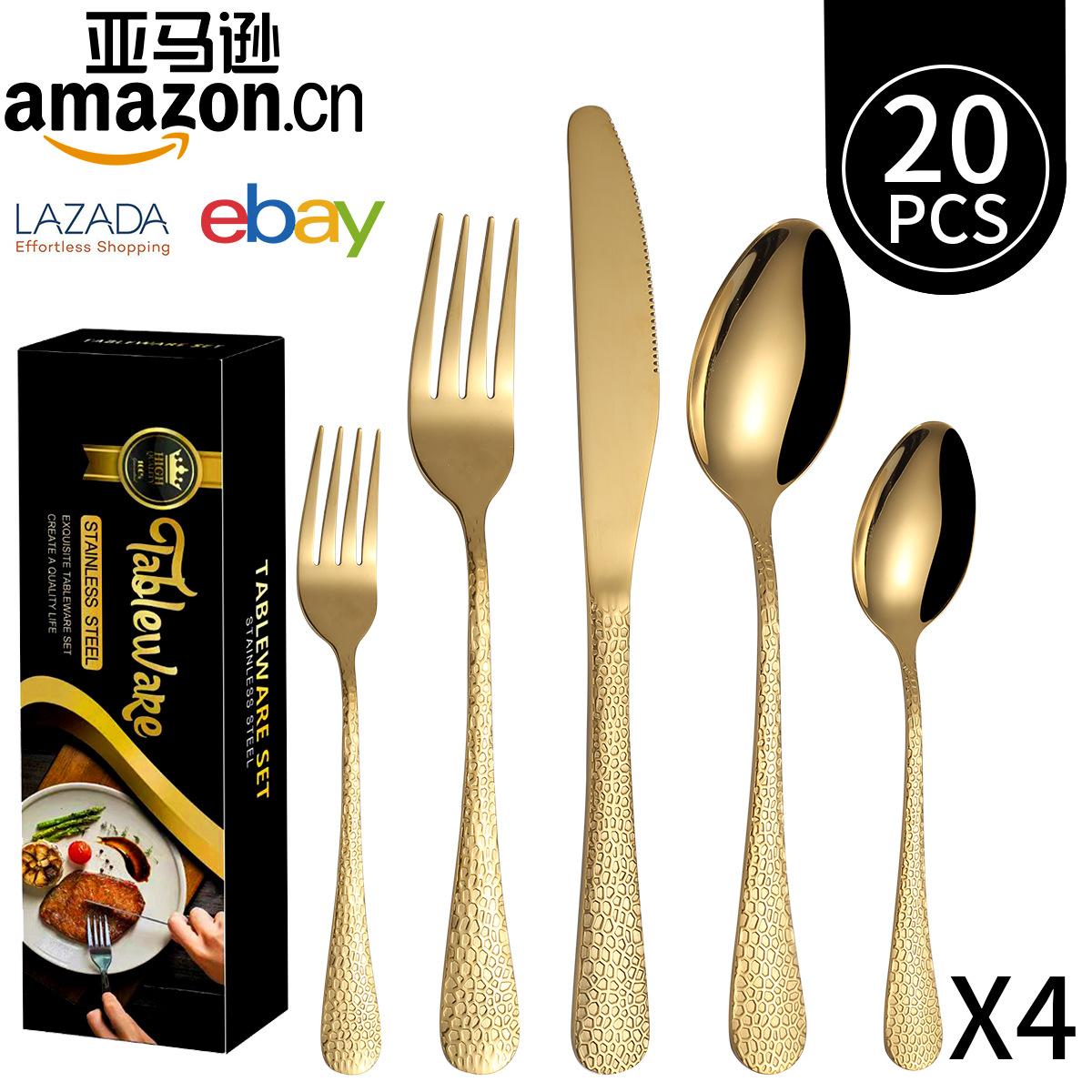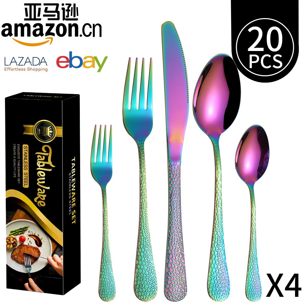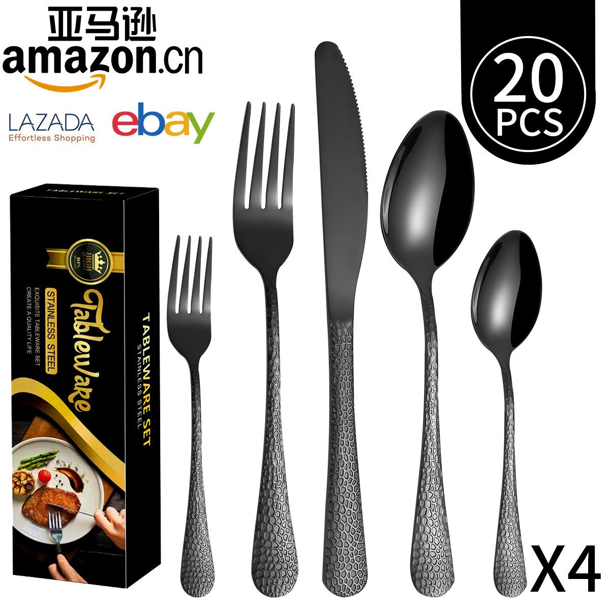 Nuevo juego de vajilla de acero inoxidable de Amazon, popular en Amazon, 20 piezas, cuchillo, tenedor y cuchara, apto para 4 personas, vajilla occidental, cuchillo para carne, tenedor y cuchara.